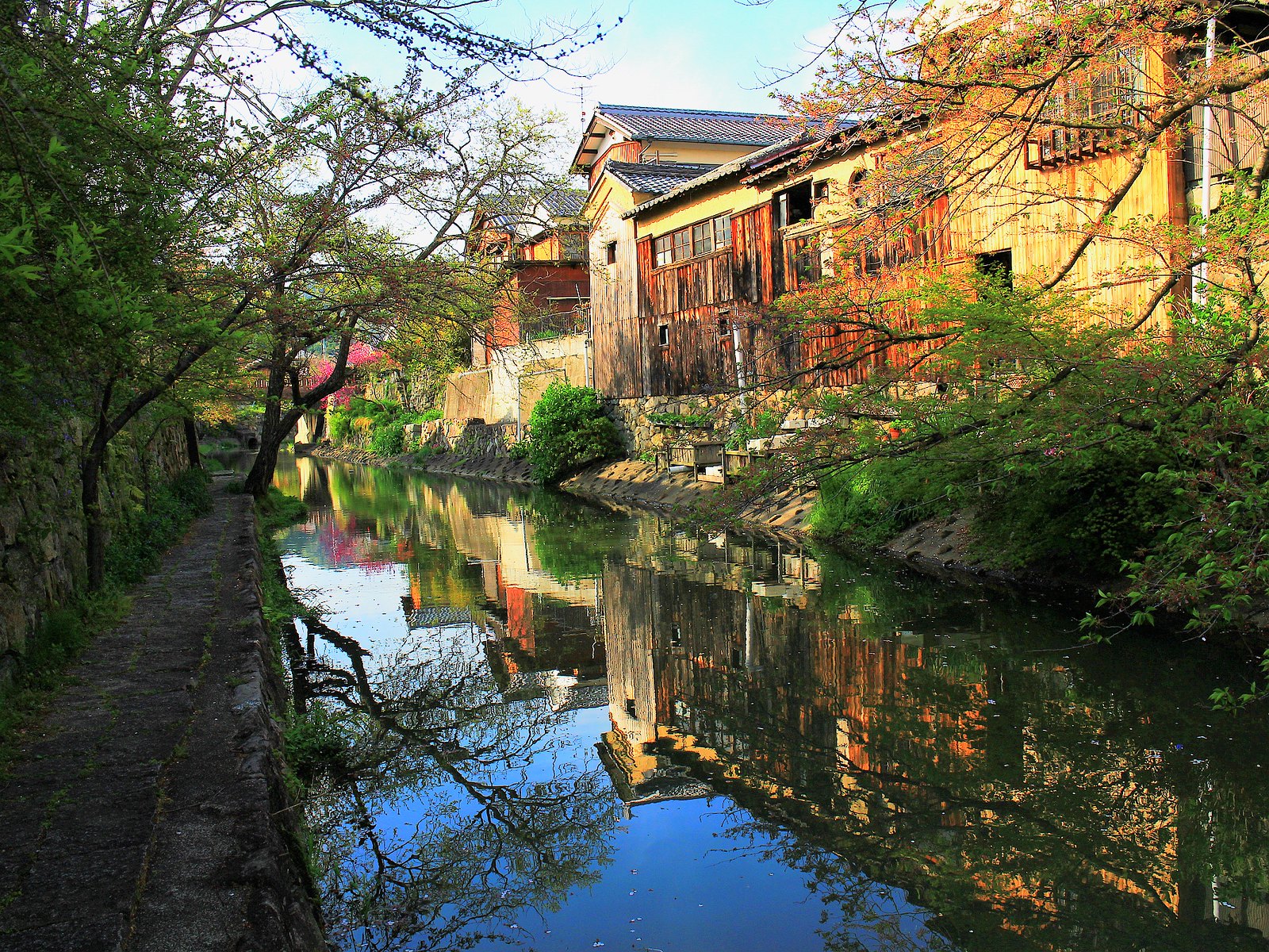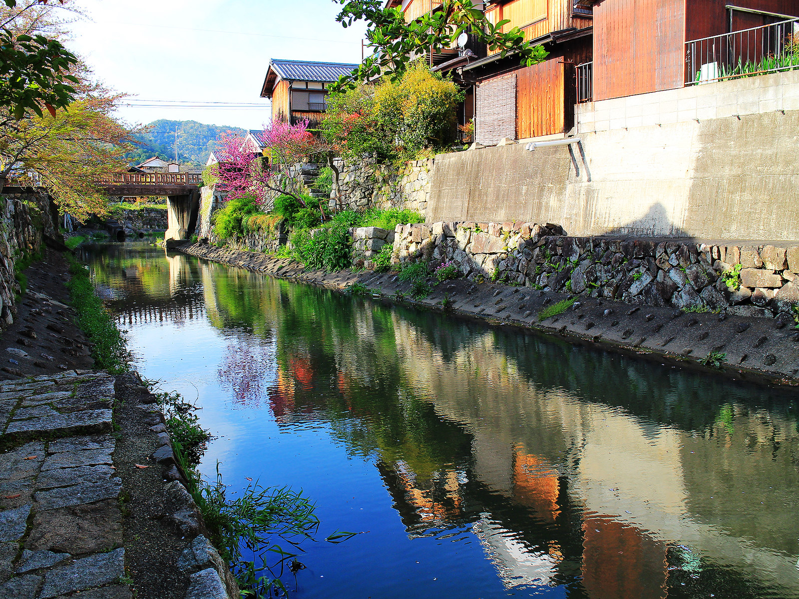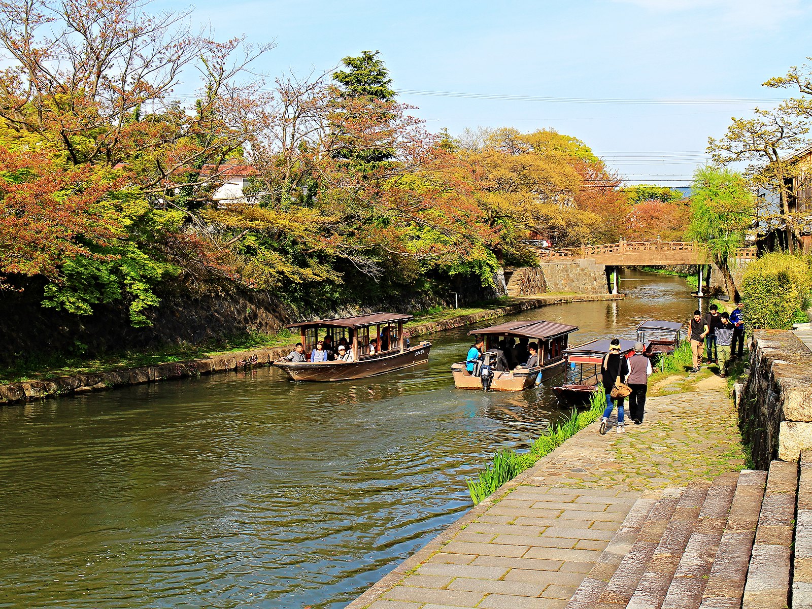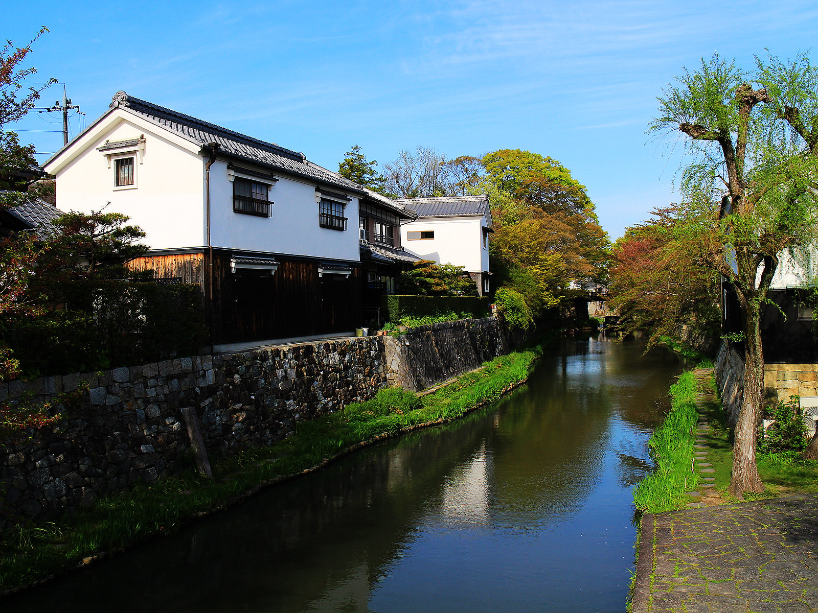 河道兩旁町家傳統建築與土藏白壁櫛比鱗次,散發江戶時代風情