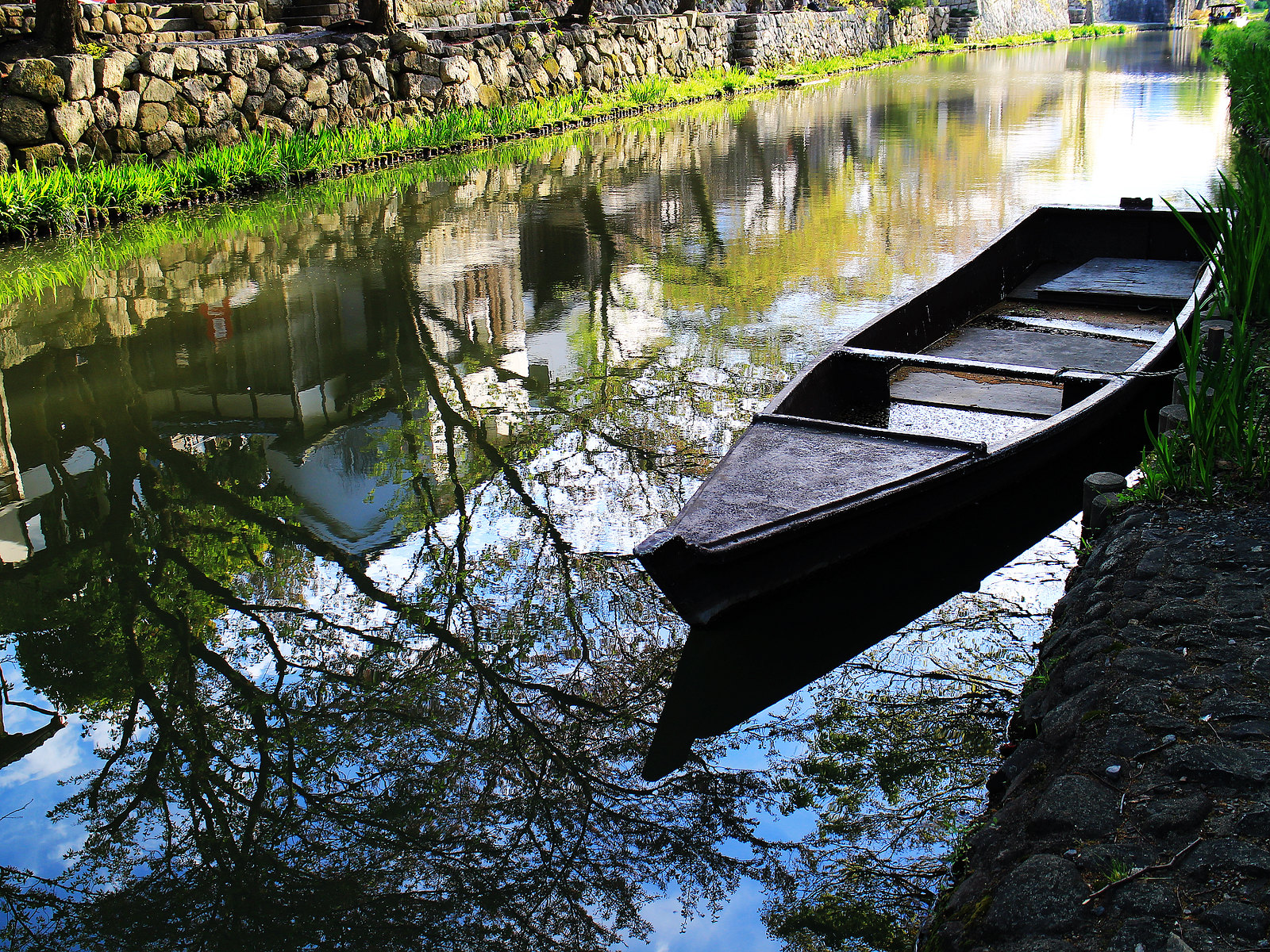 短短數百公尺的八幡堀,我來回走了兩次,深怕錯過任何景物。波光粼粼,看不到一點垃圾,聞不到一絲異味,令人感佩當年致力保留河道的人們,完成如此成功的社區營造,至今各種團體仍持續清掃活動,就是為了能將珍貴的自然資產永續傳承。