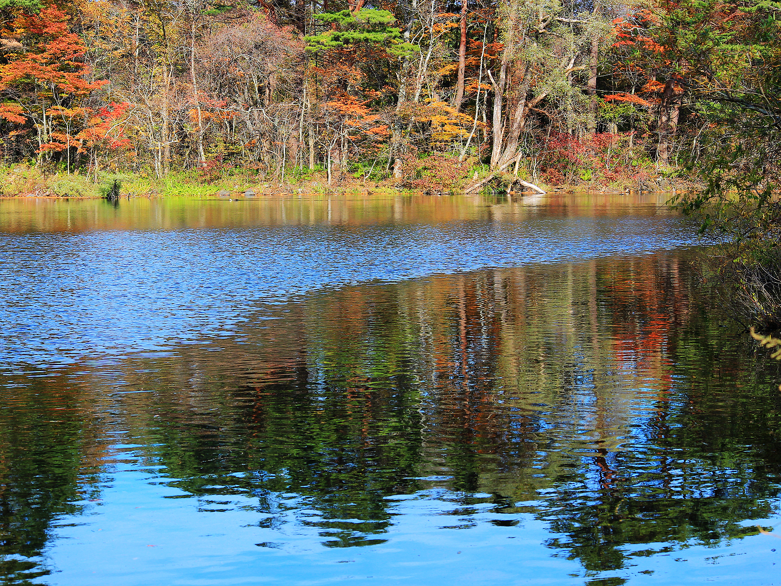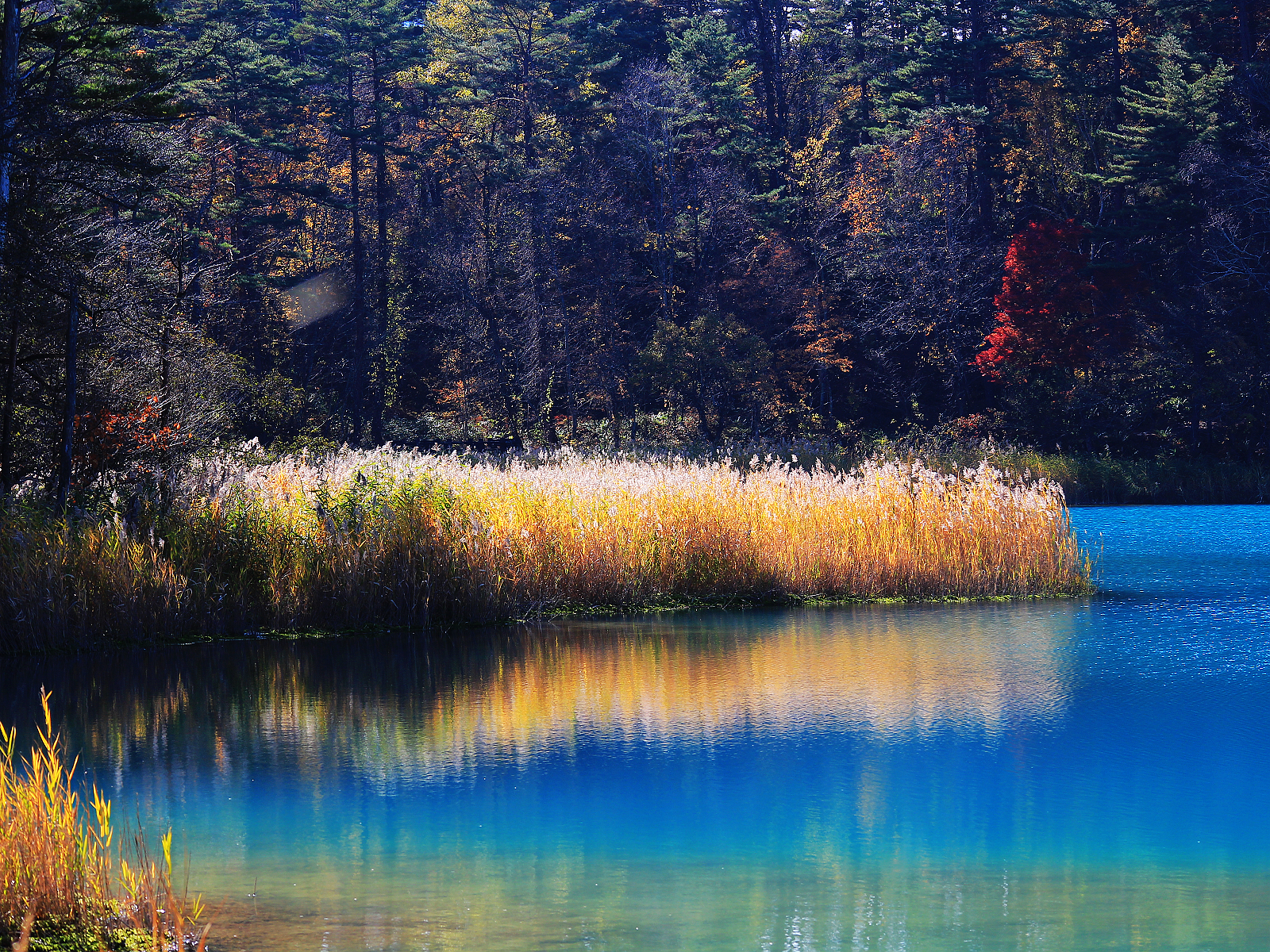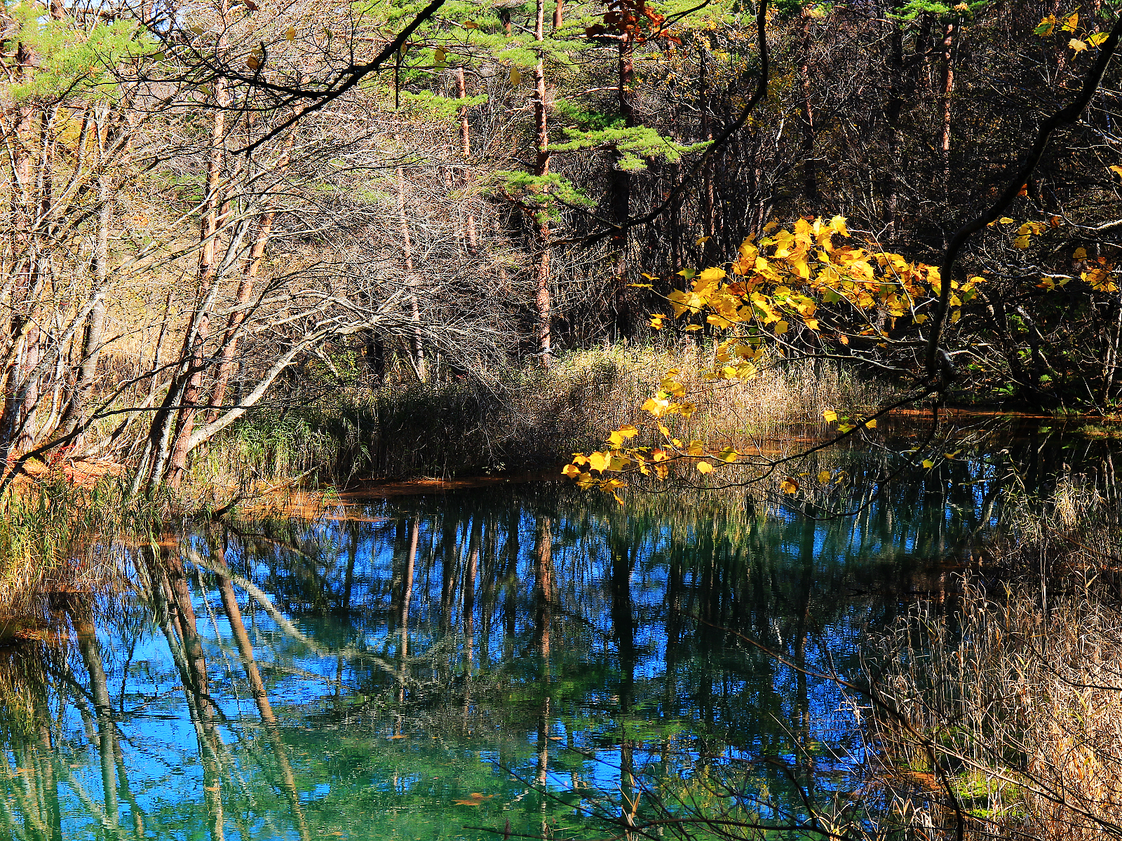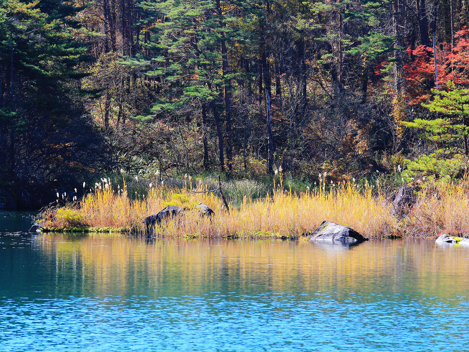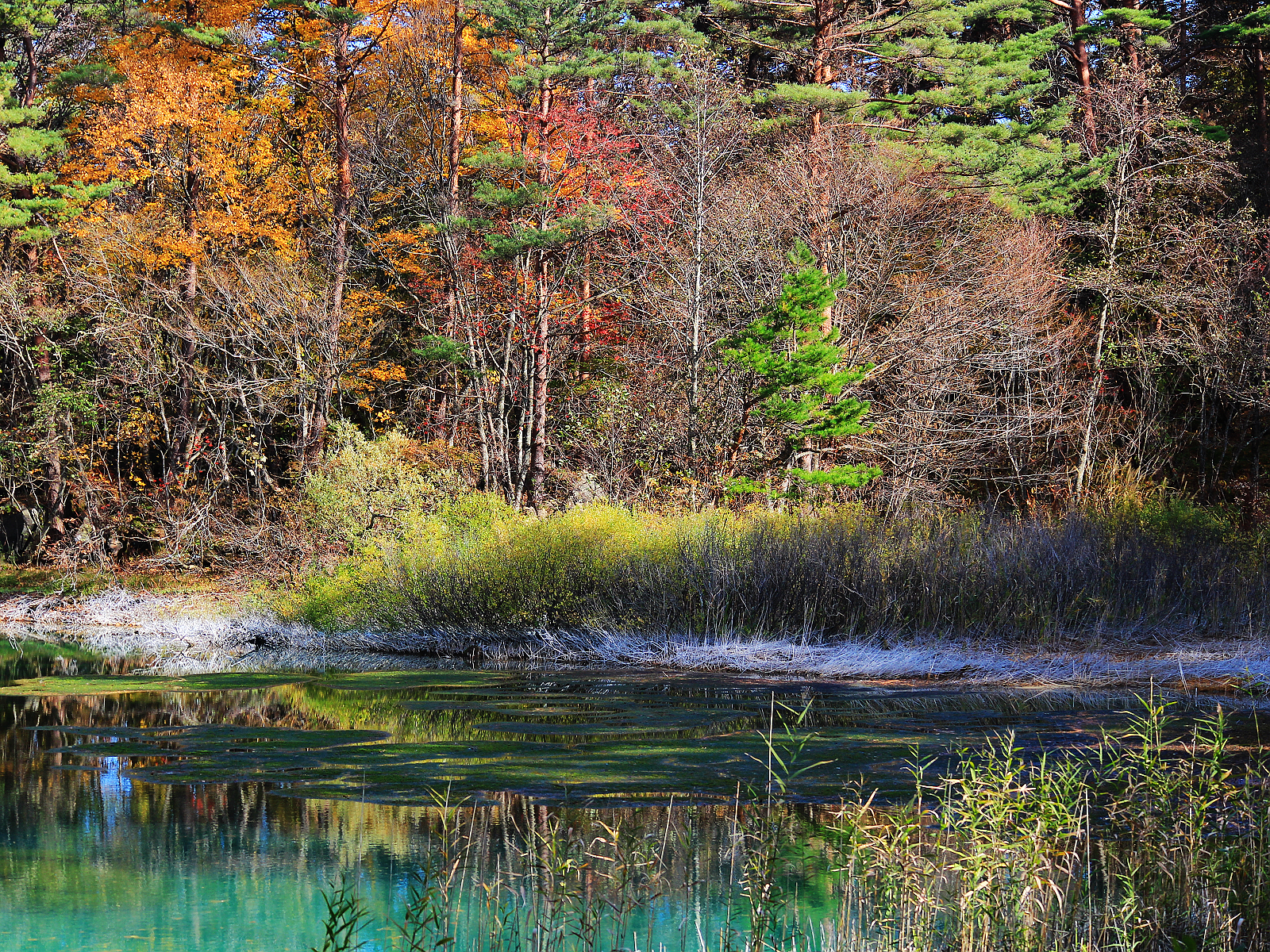 【赤沼】五顏六色草木倒映在藍綠色湖面上