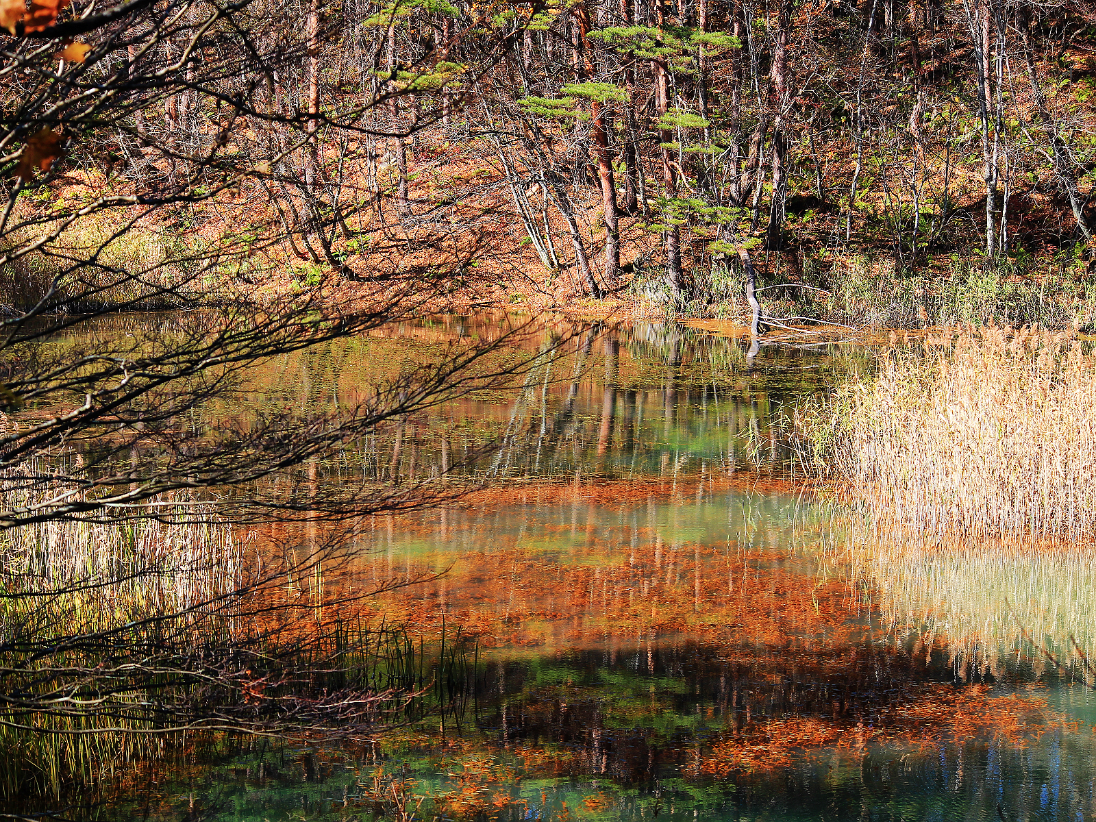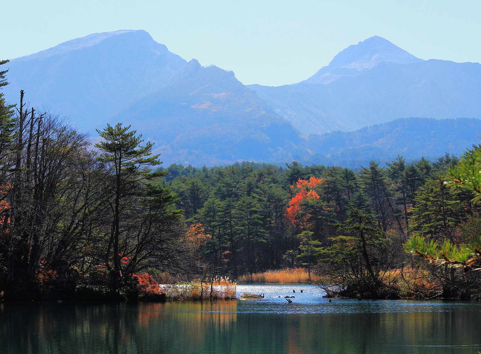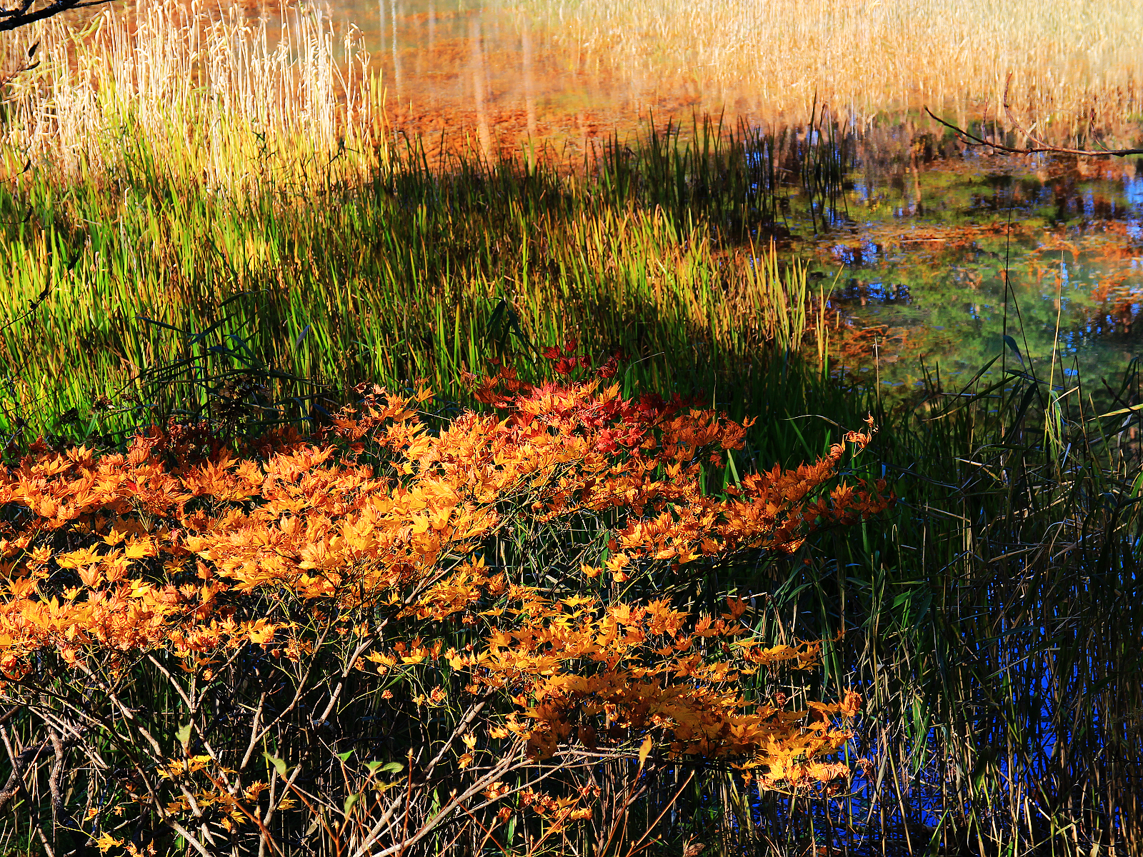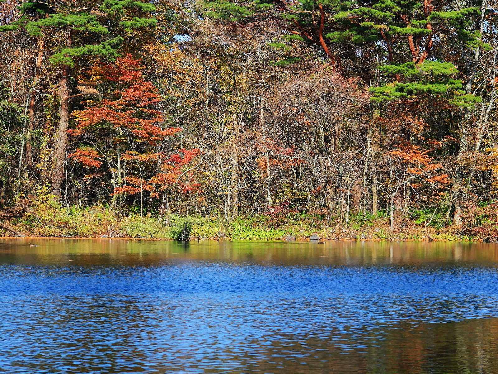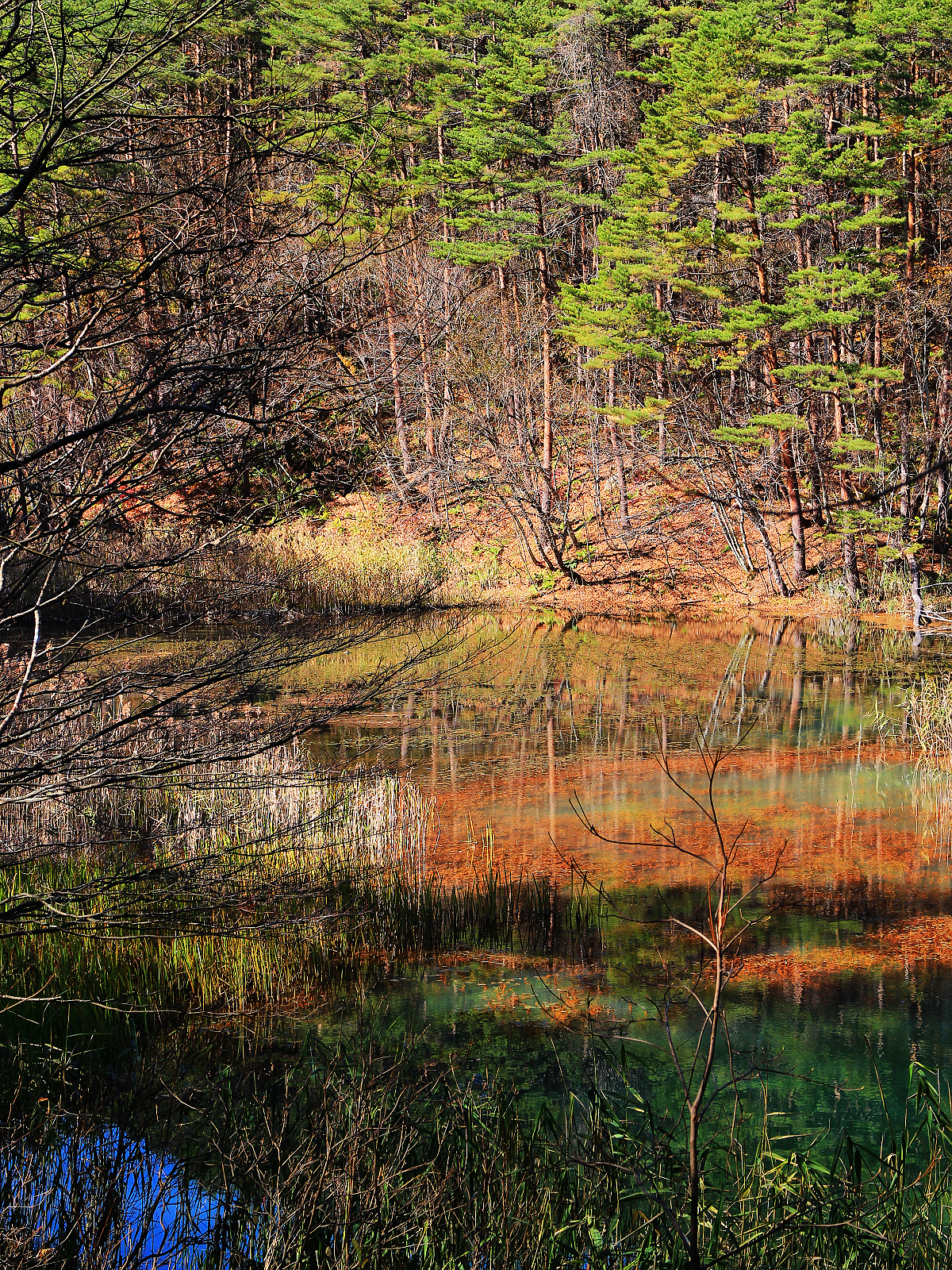 【赤沼】五顏六色草木倒映在藍綠色湖面上