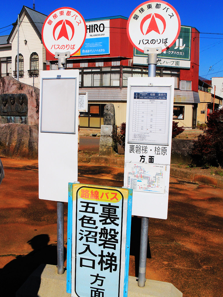 豬苗代車站前找到磐梯東都巴士,搭往五色沼的巴士,