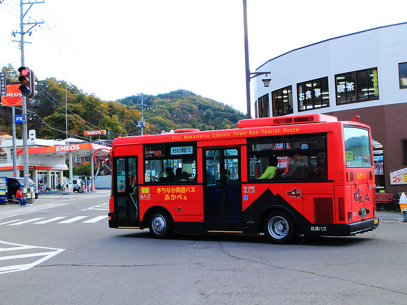 紅色是順時針方向運行的「あかべぇ」(Akabe),主要景點都有站牌,搭一次210円,