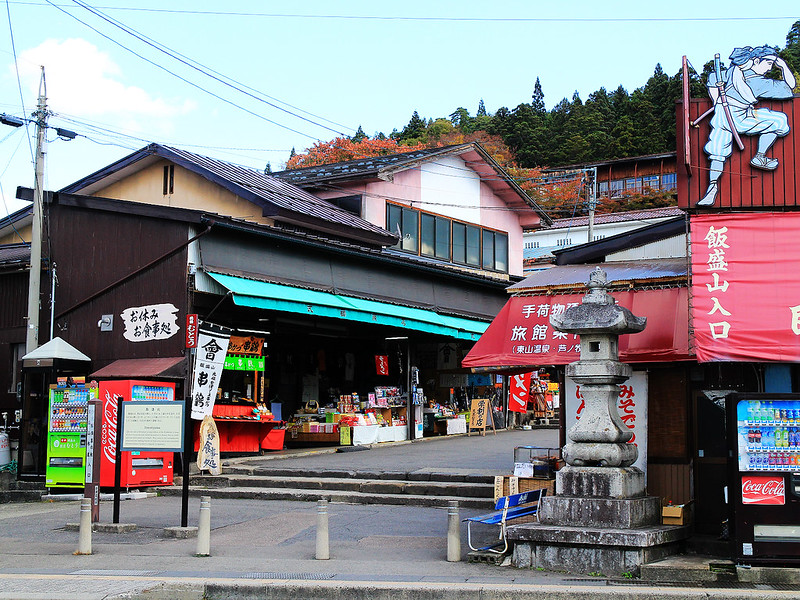 飯盛山入口兩側都是土產店