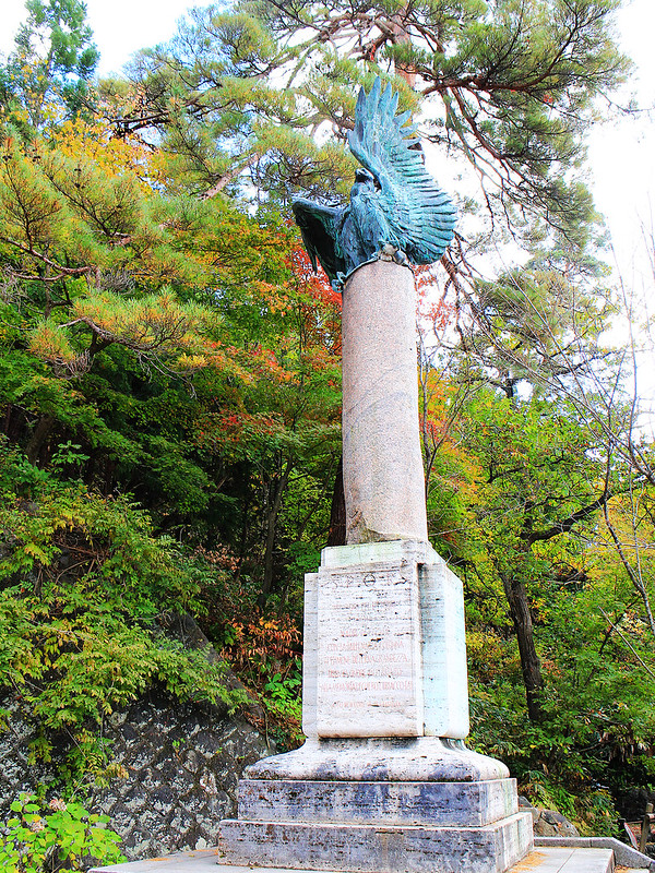 二戰日本戰敗,美軍進駐曾把碑文削除撤走此石碑,現在看到的是昭和28年復元