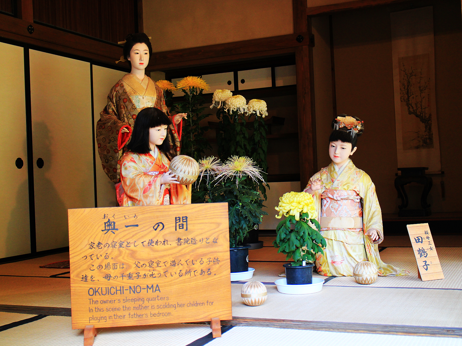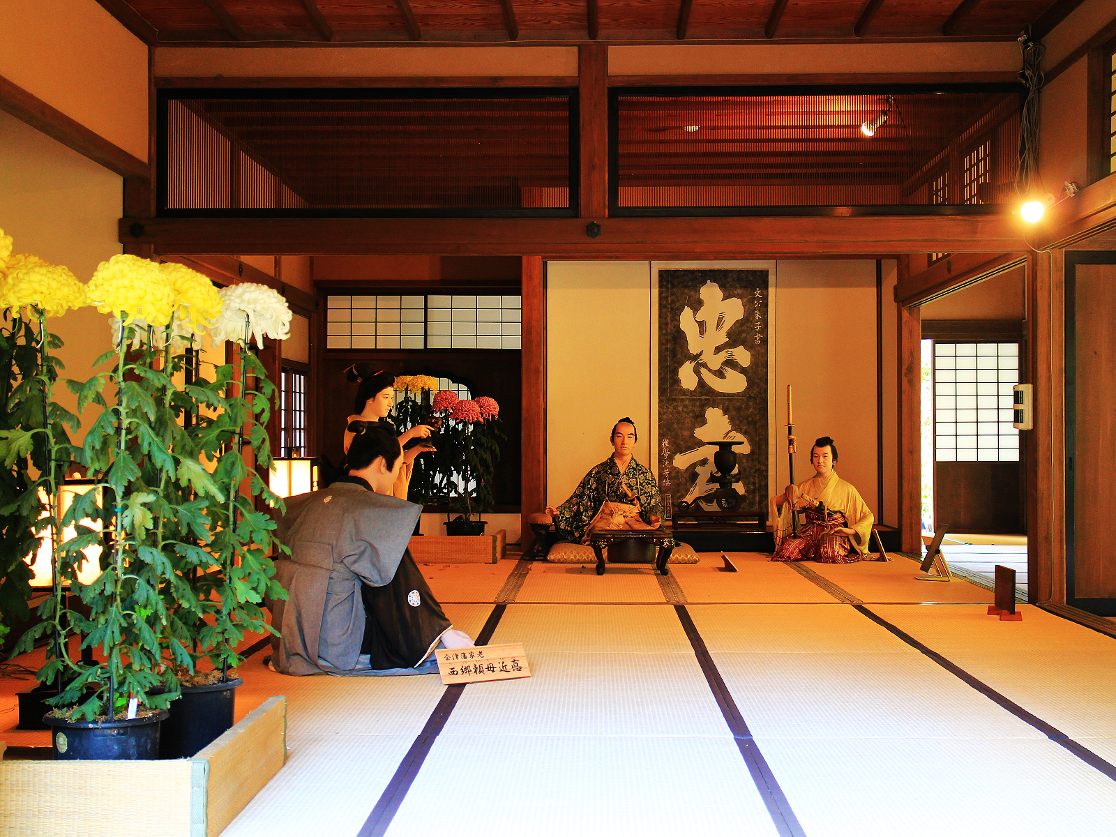 「御成りの間」,藩主來訪時才使用的部屋,正面人形是会津藩主松平容保,左側是西鄉賴母