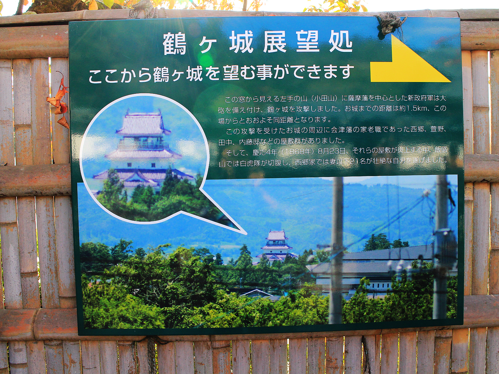 會津戰爭時,鶴城被駐守在前方小田山上的新政府軍大砲猛烈伺候,距離約1.5公里,與武家屋敷到鶴城的距離差不多