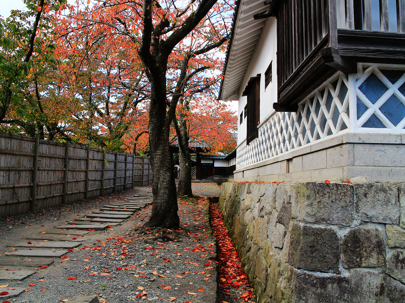 初秋時節來到會津武家屋敷,蛻變中五顏六色的林葉,將每個角落妝點得美麗繽紛,稍稍沖淡曾經有的悲慘過往。