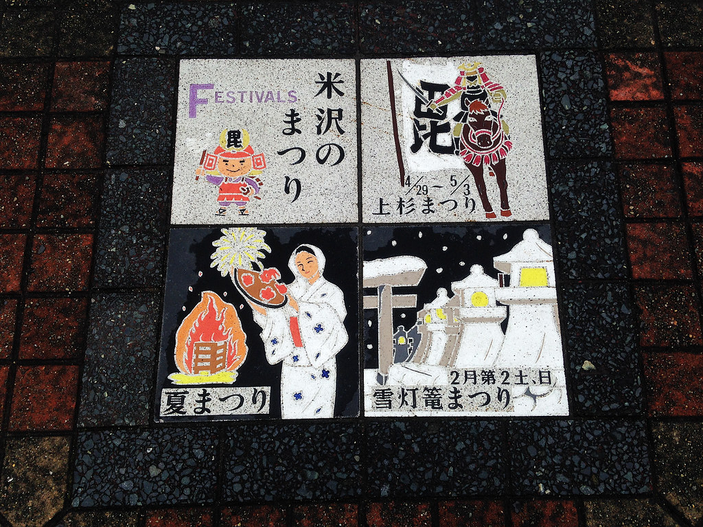 人行道地磚的米澤祭典彩繪