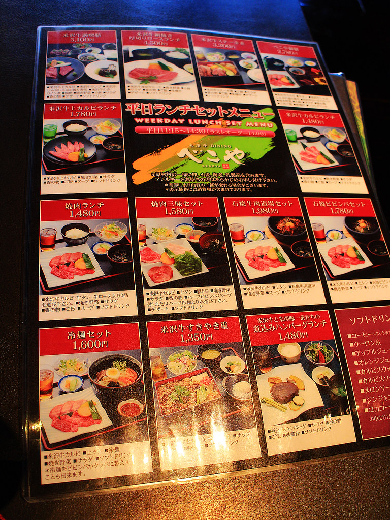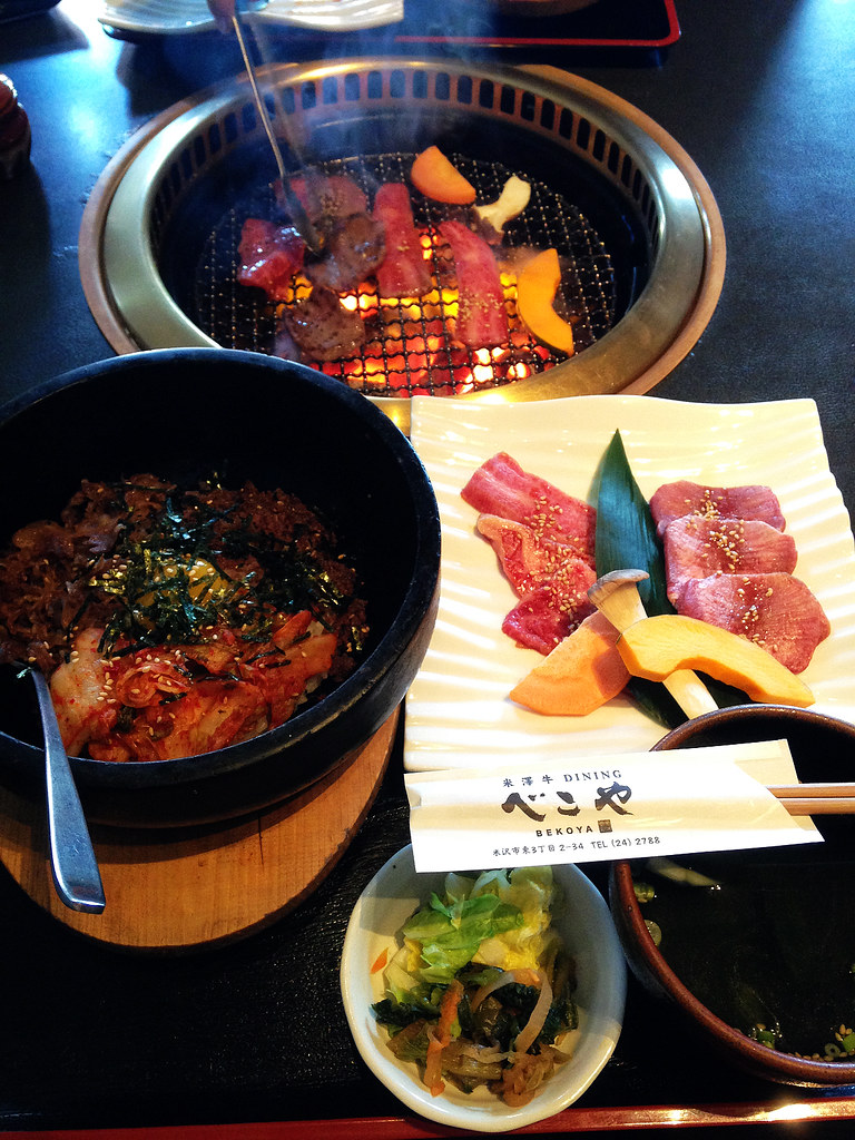 來到米澤沒吃日本三大和牛之一的米澤牛就太對不起自己了!為了方便我找了日本旅遊雜誌推薦、就在車站附近的DINING べこや(Bekoya),相當滿意!