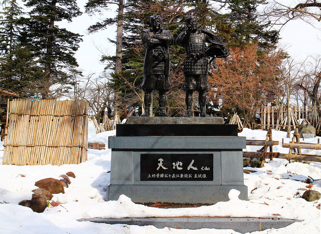 天地人雕像:《天地人》是2009年播放的第48部NHK大河劇,描寫直江兼續的一生,改編自火坂雅志原作小說