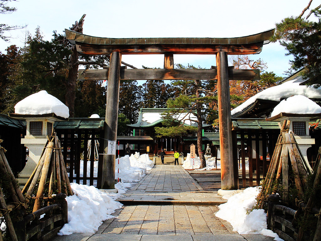 目前看到的是大正12年(1923年)由米沢市出身、曾參與平安神宮、築地本願寺等多項大型廟宇工程的