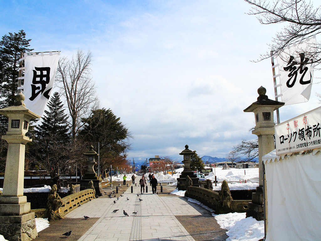 大雪暫歇的午後,我們從長野風塵僕僕來到米澤,只為了一睹毎年一度、為期僅兩天的上杉雪燈籠祭(上杉雪灯篭まつり)。終於能造訪這座與戰國將才直江兼續淵源深厚的城鎮,更令我興奮不已。