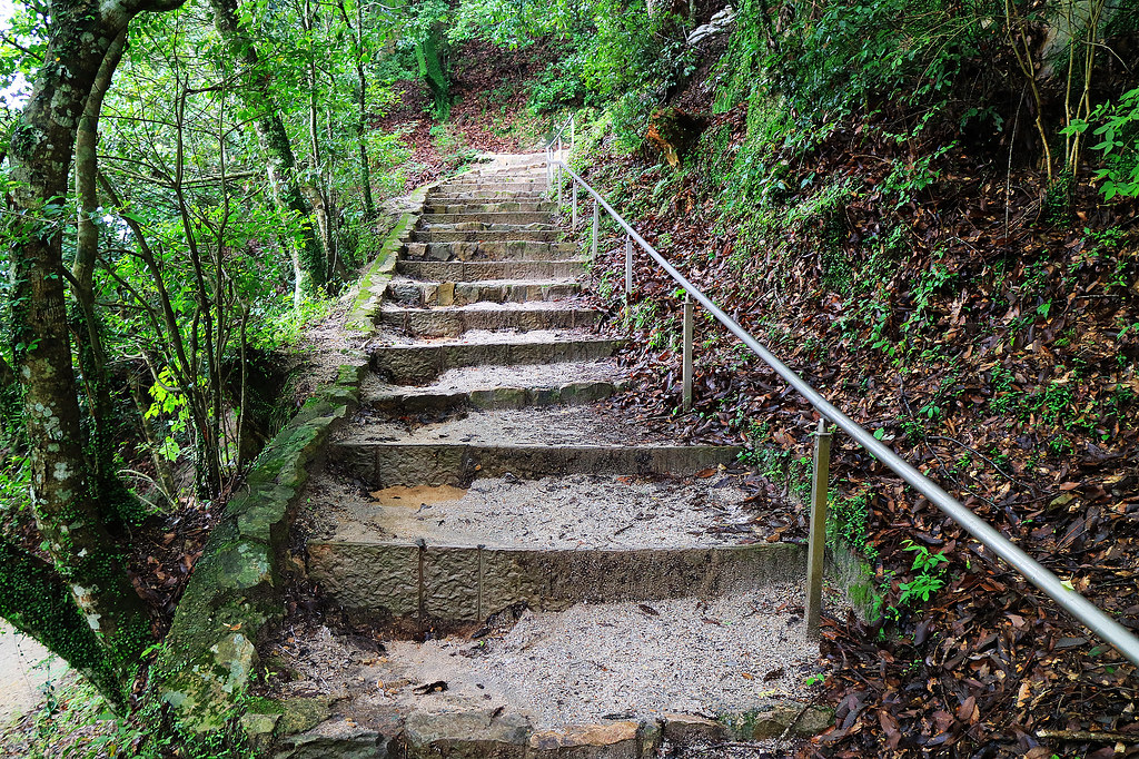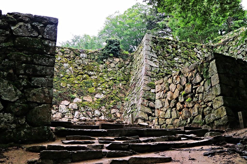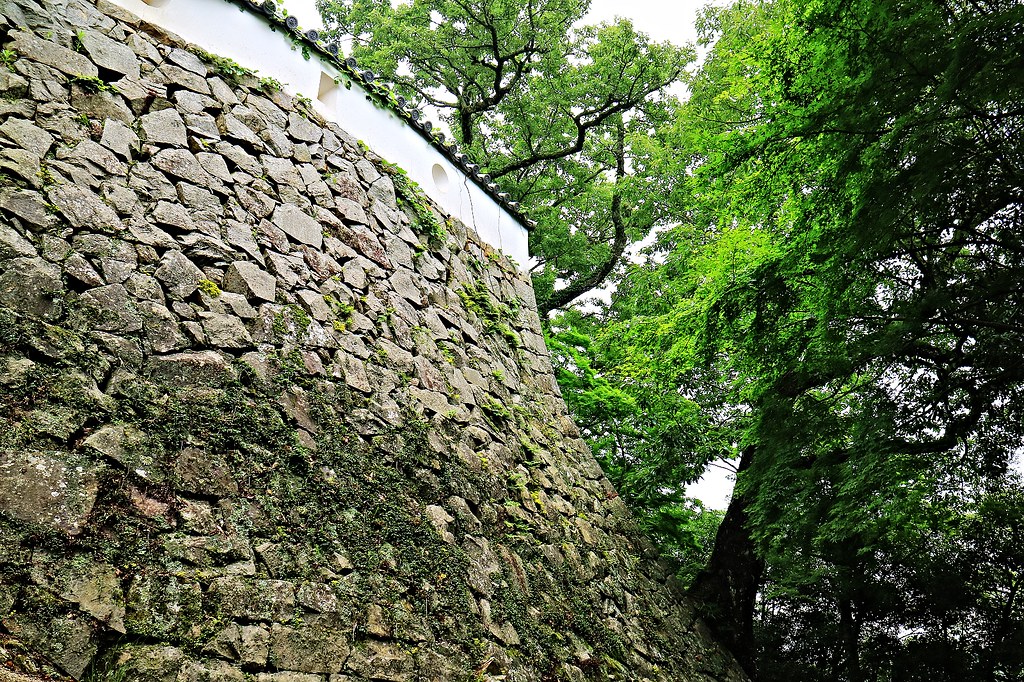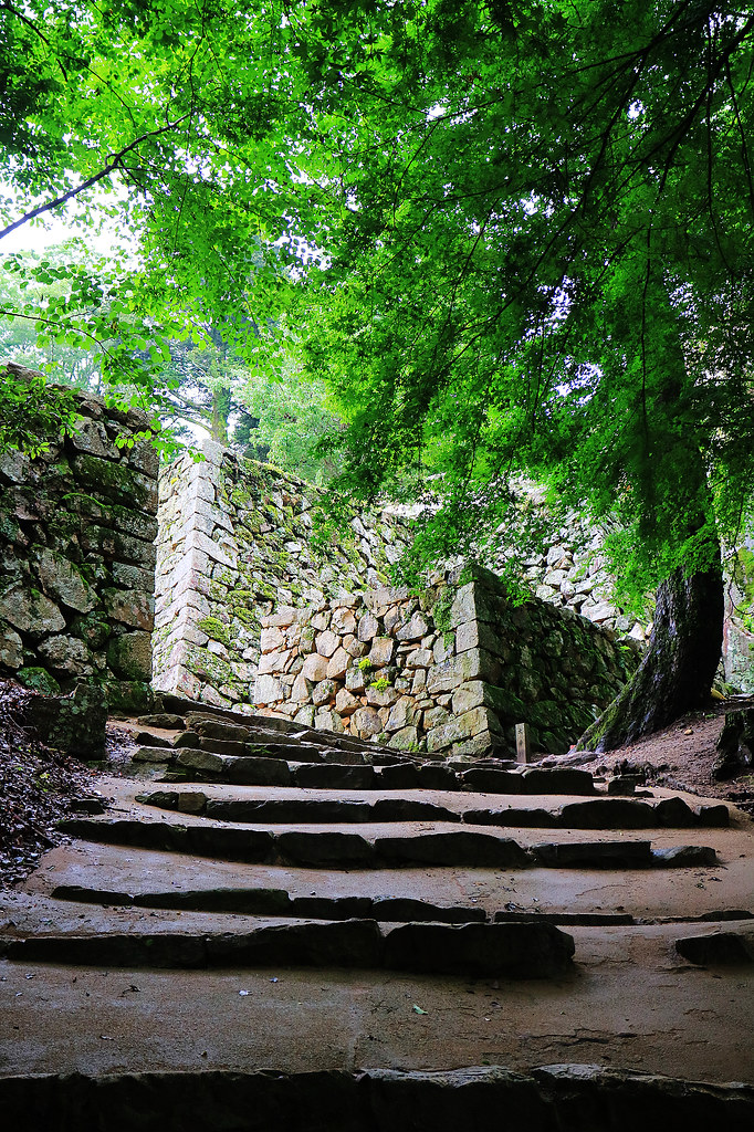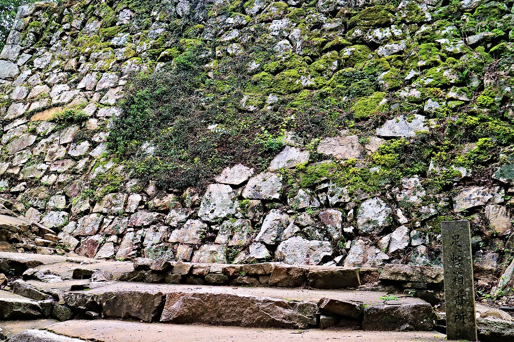 從大手門跡順著山路往上可看到構築城郭的雄偉石垣