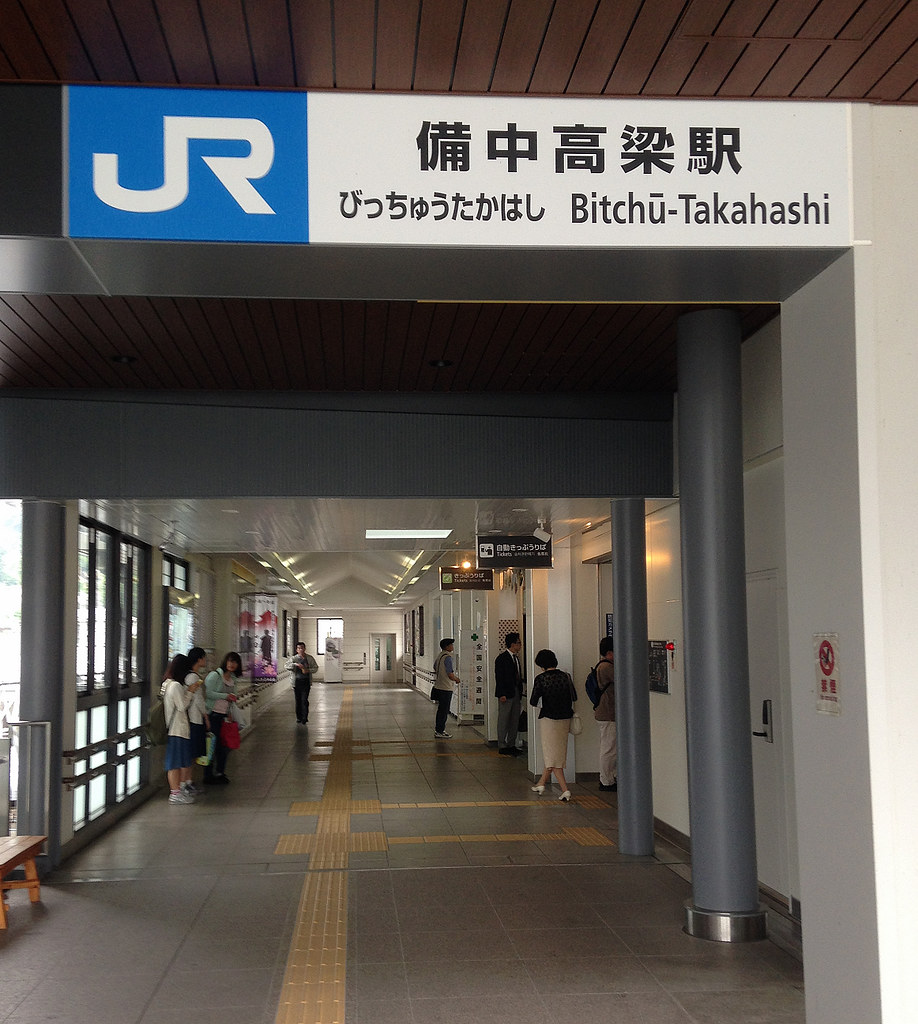 搭乘8:04岡山發的やくも3号,8:39備中高梁到著