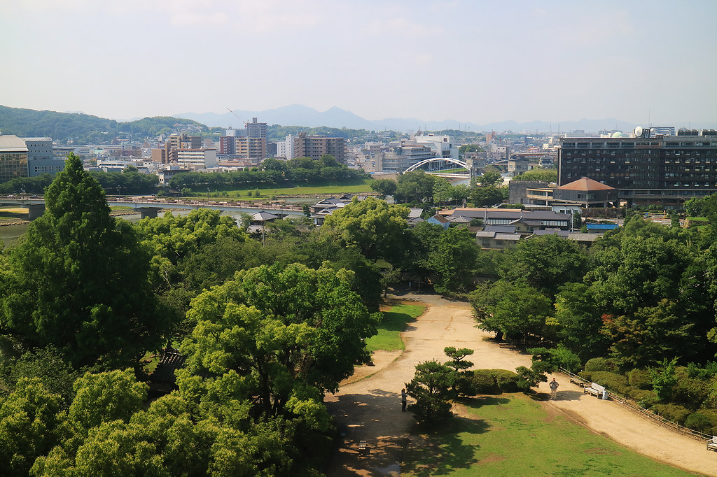 從天守五樓眺望旭川和後樂園
