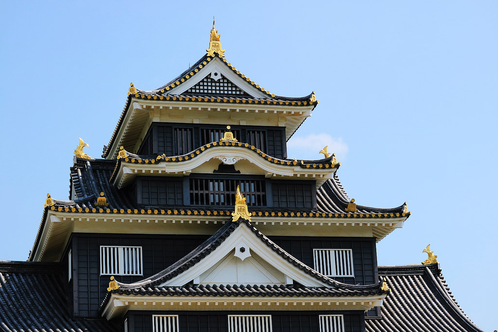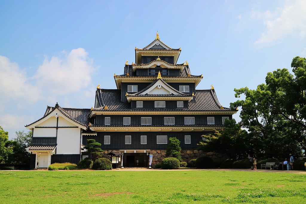 岡山城築城歷史最早可追溯到《備前軍記》記載的南北朝(1346年至1369年)名和氏一族,此後150多年的城主資料不明。戰國時代大名宇喜多秀家繼承領地後進行多次大規模增築,前後耗時8年,形成有五重壕溝圍繞,幅員廣達南北3.5公里、東西1.3公里的雄偉4重6階梯郭式平山城。由於城郭東側無防禦屏障,他為了防止敵人從背後入侵而改變旭川流路,使旭川流經城郭東側以作為天然護城河。最吸睛的當然是漆成黑色的天守閣,因此岡山城也有烏城、金烏城別名。秀家不但將岡山城建造為防禦堡壘也積極發展城下町,是奠定岡山城繁榮重要推手。可惜關原之戰後擔任西軍主力的他被流放到八丈島,自此與岡山城永別,在島上度過49年餘生抑鬱而終。