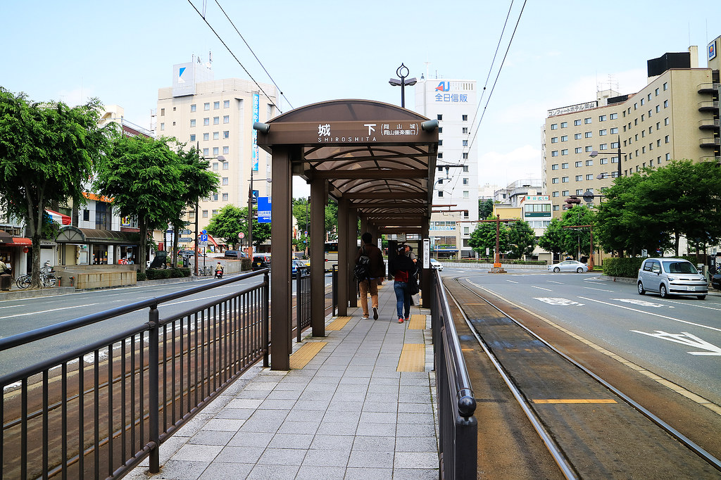 從「岡山駅前」搭路面電車「東山行」到「城下」站下車,徒歩10分即可抵達岡山城