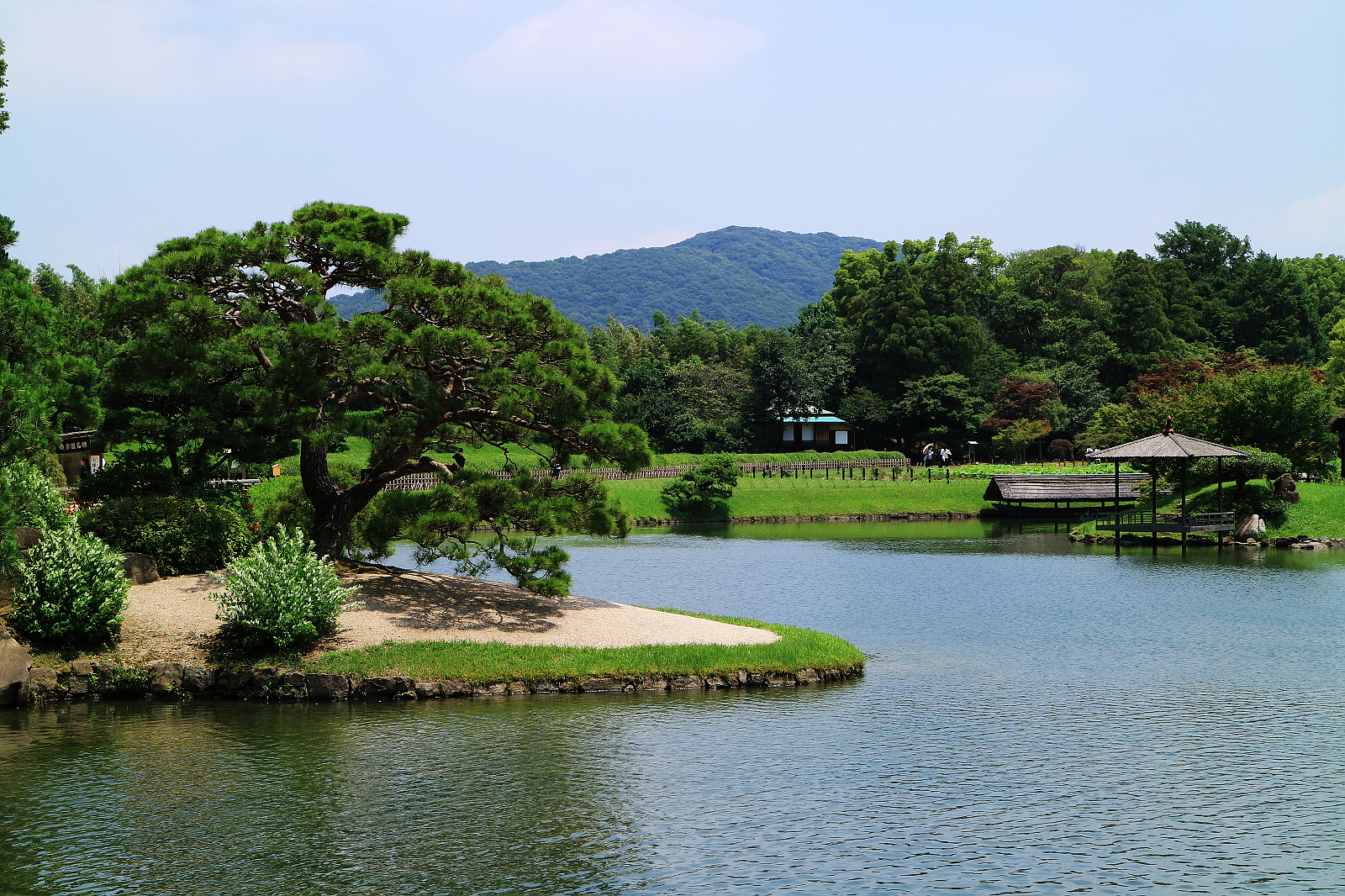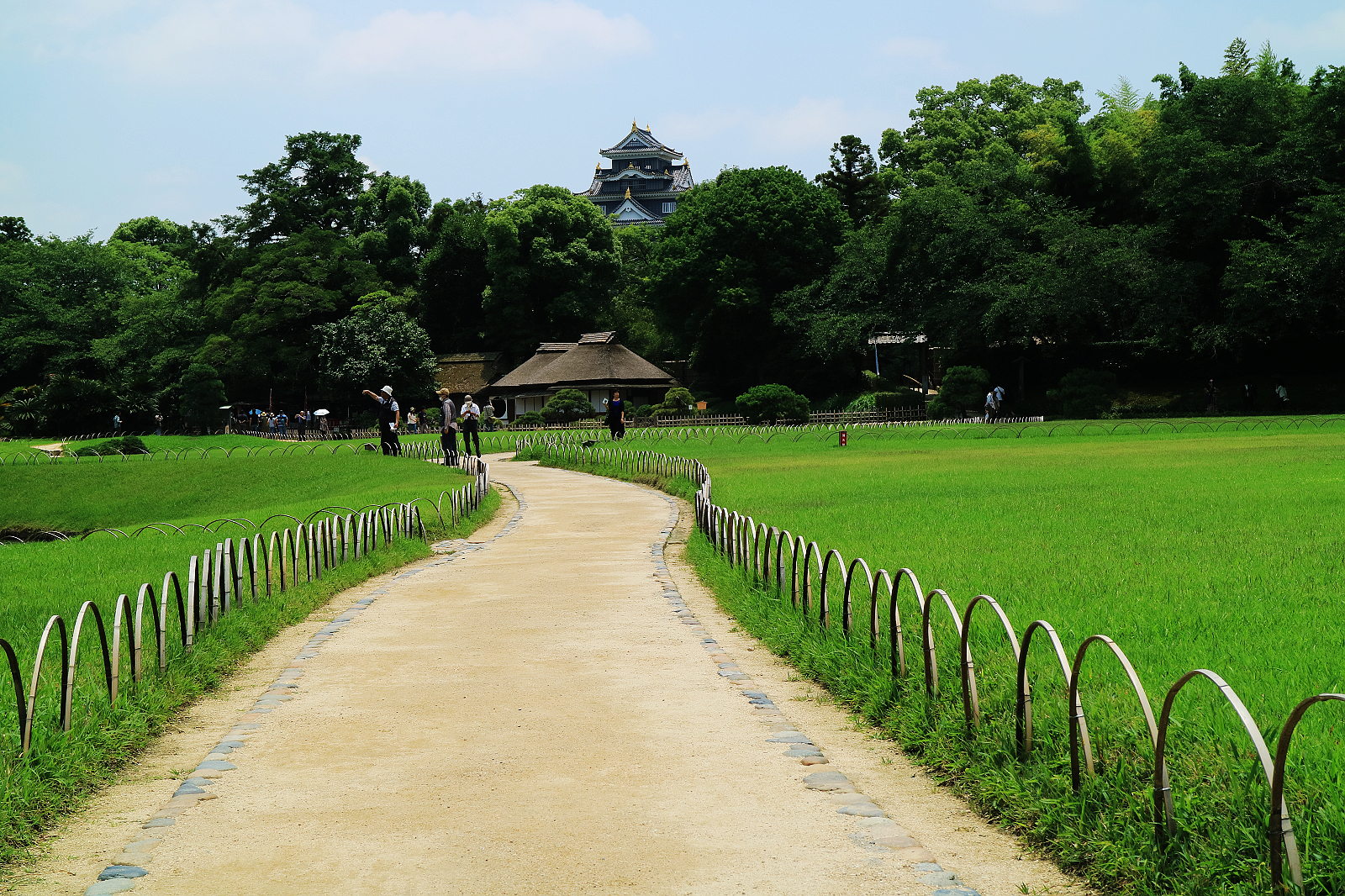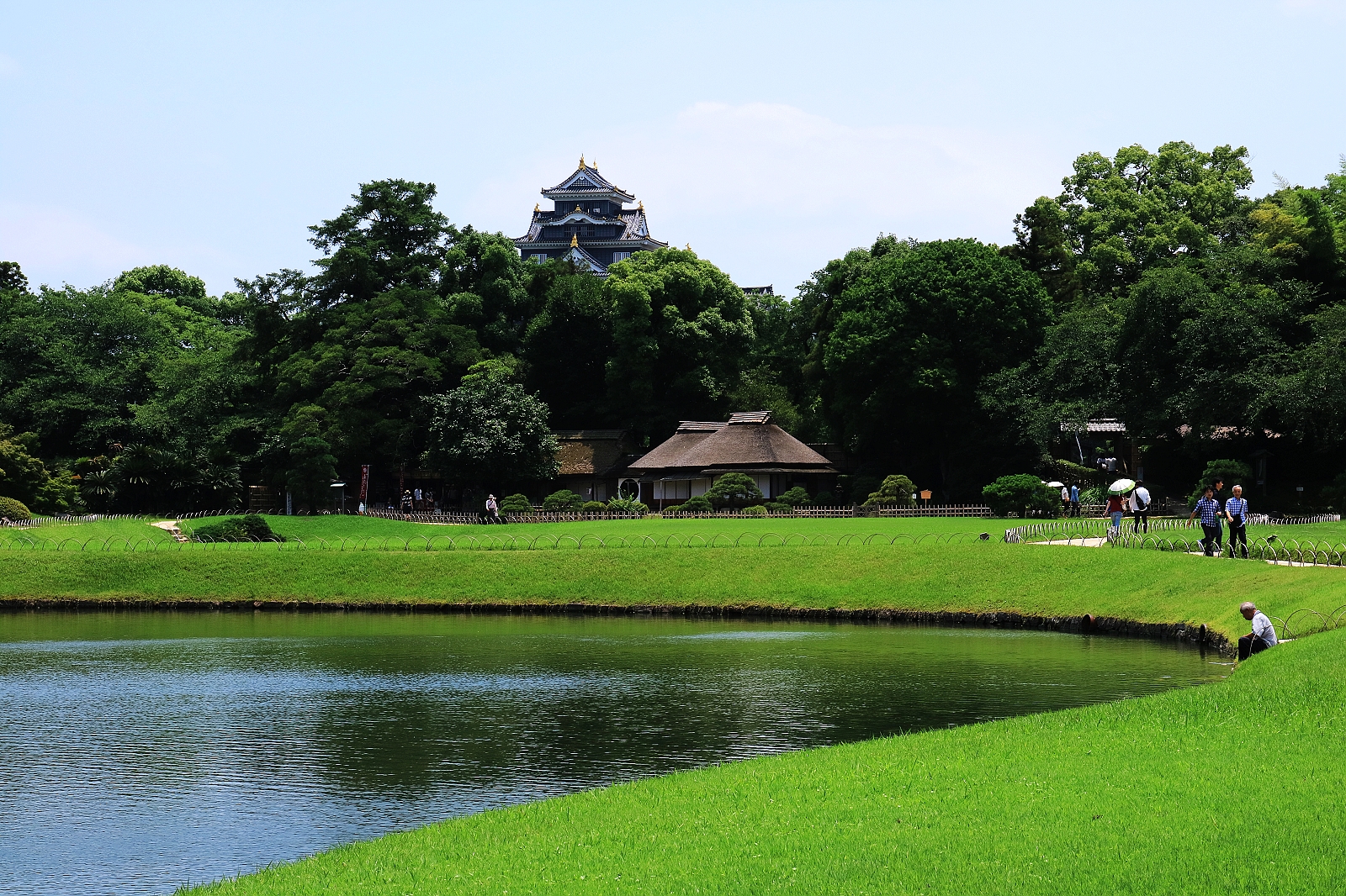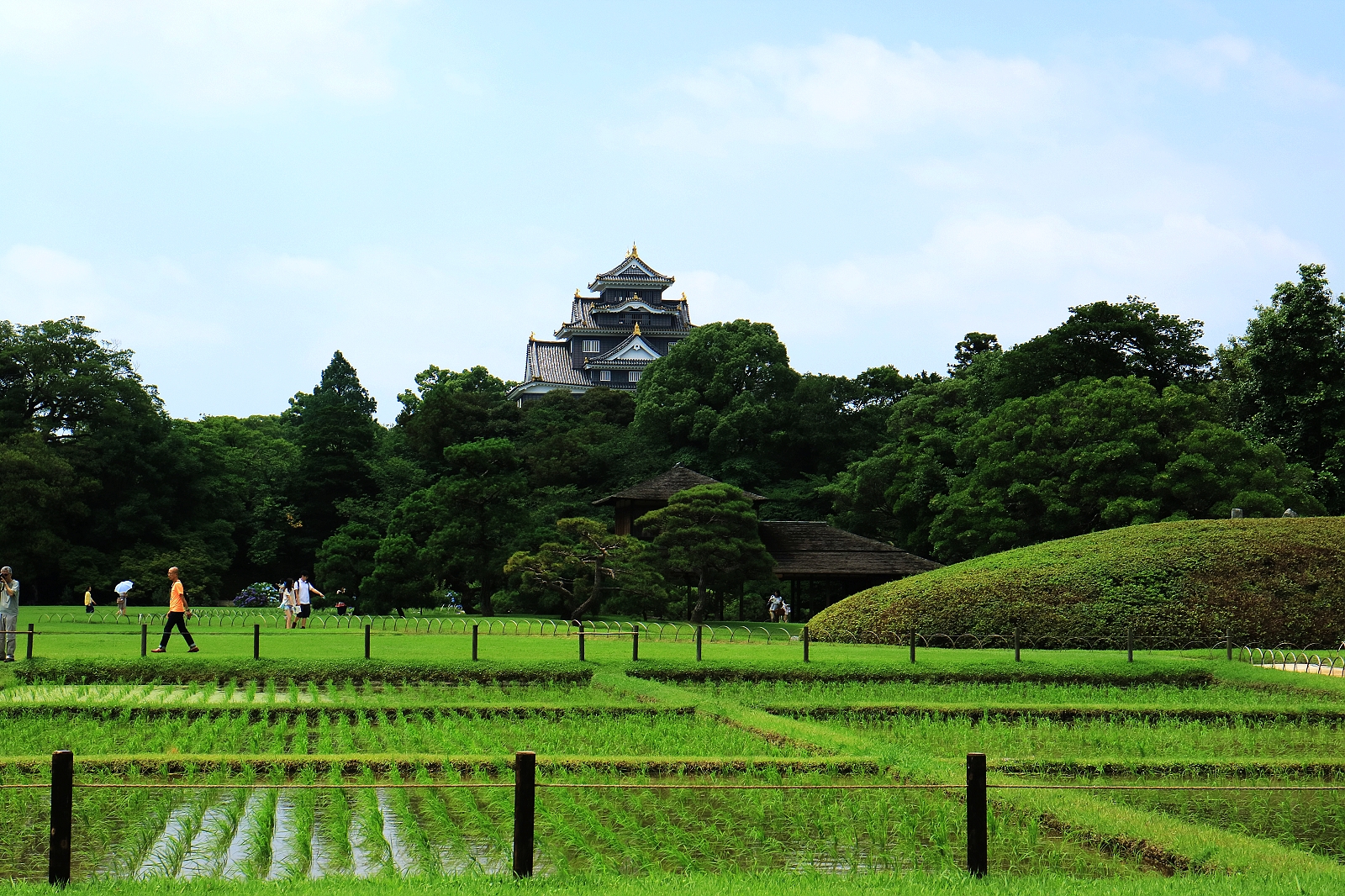 後樂園建造時園內大部分是田地,明治以後才鋪設大量草坪,加上原來的茶園,整座庭園綠意盎然,從高處望,風景相當宜人,有如世外桃源。