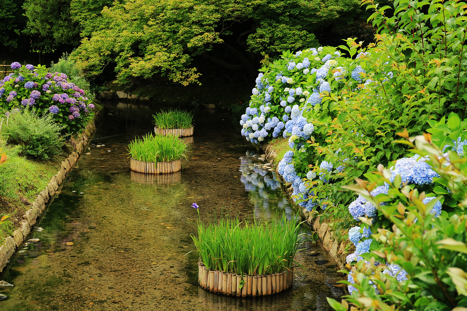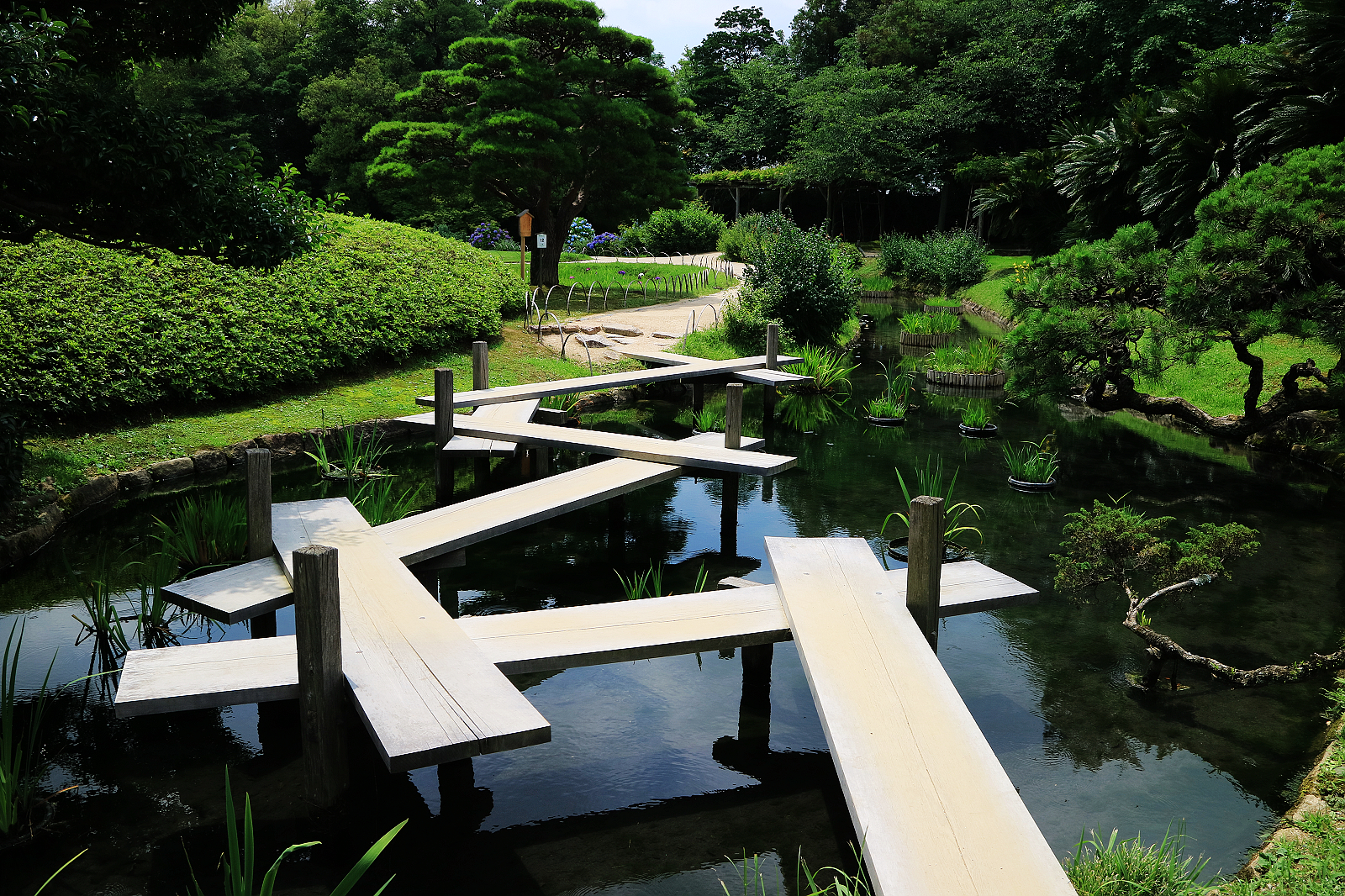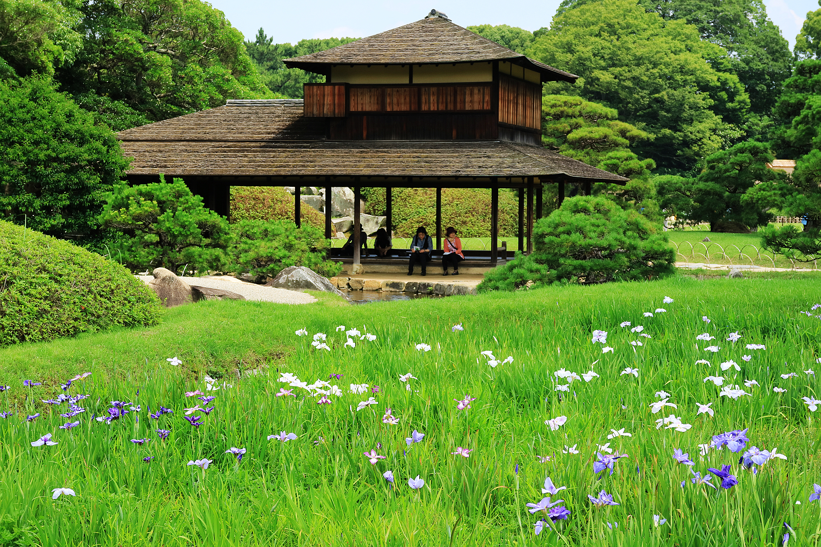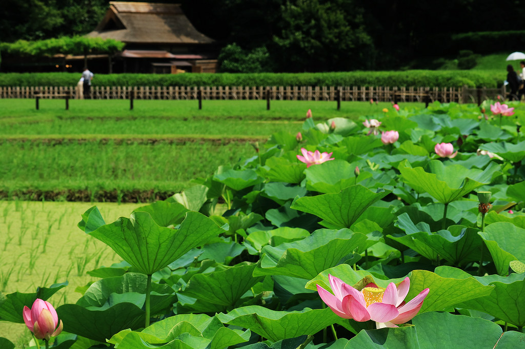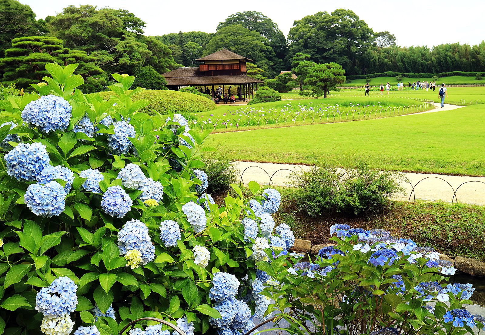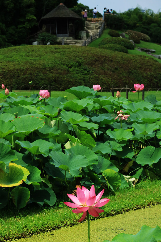 造訪後樂園正值花菖蒲與繡球花季進入尾聲、蓮花初綻的初夏時節,滿園綠意與水天一色的旖旎風光驅散了逐漸升騰的暑意。