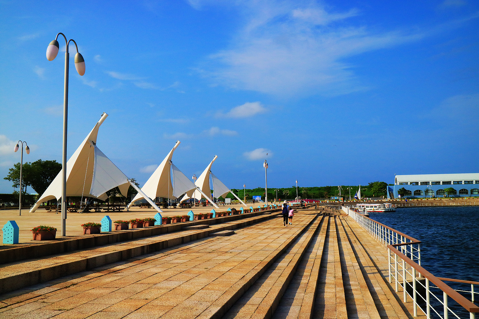 海王丸公園到著,下午4點依然烈日高張