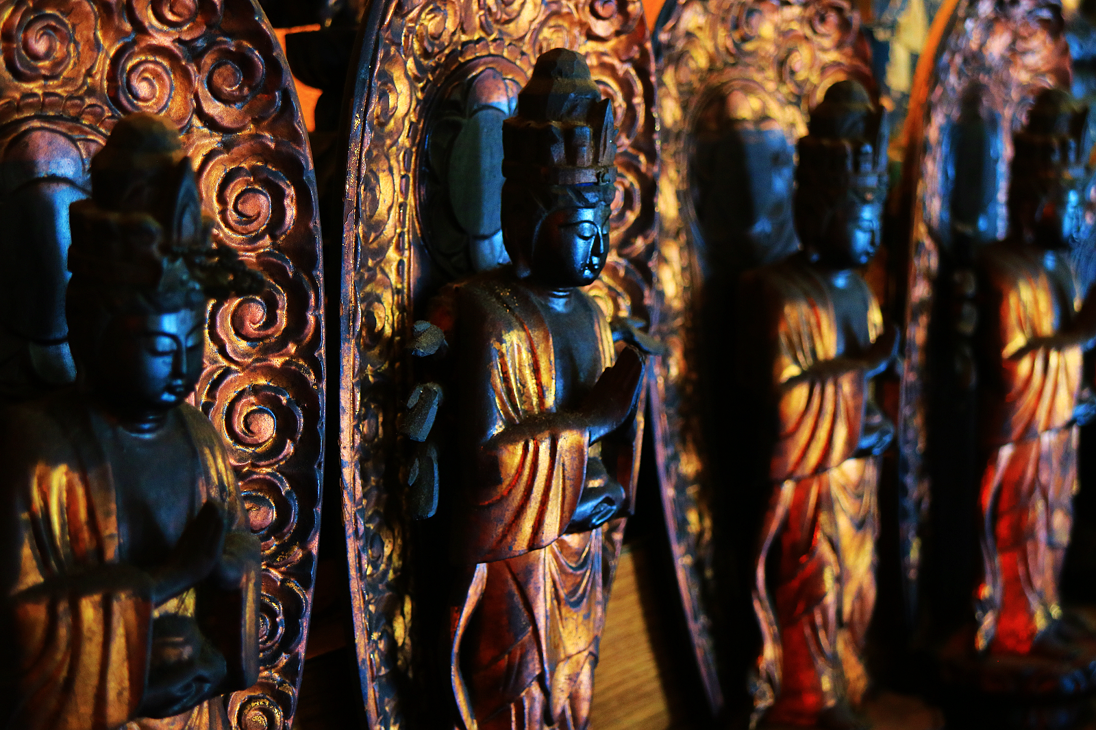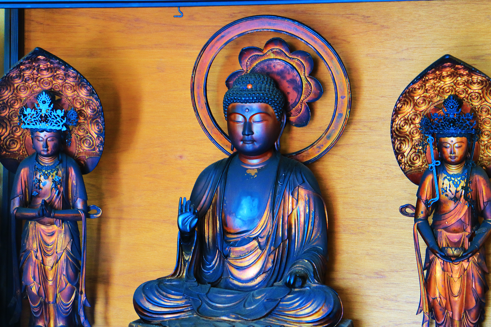 高岡大佛台座內部安置阿彌陀三尊等諸佛像供參拝