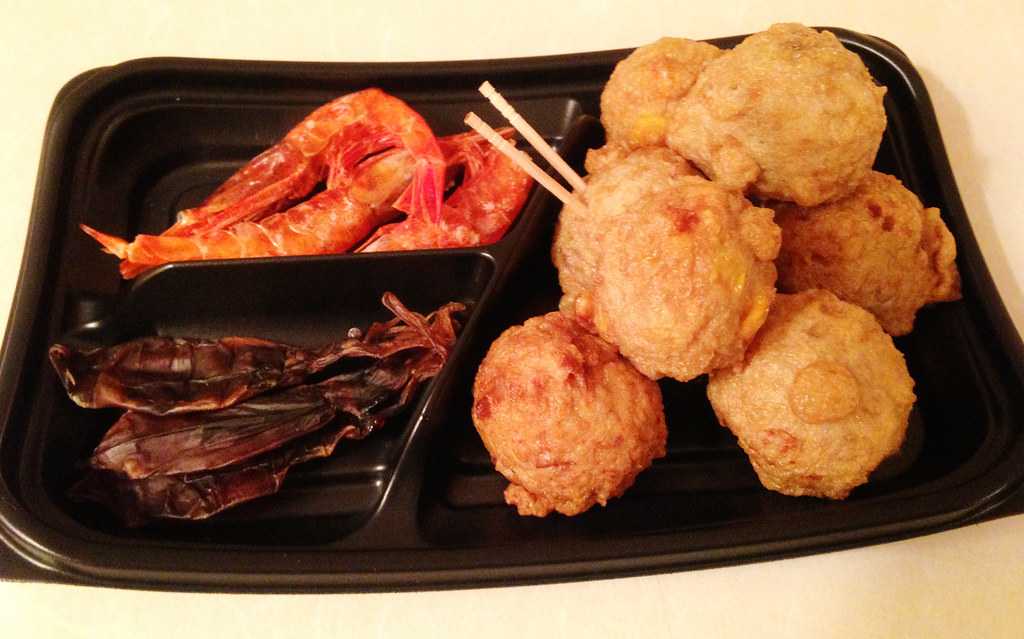 和鱒寿司一起享用的也是富山特產,魚丸、炸蝦、螢烏賊乾。會發光的螢烏賊是富山「縣魚」,