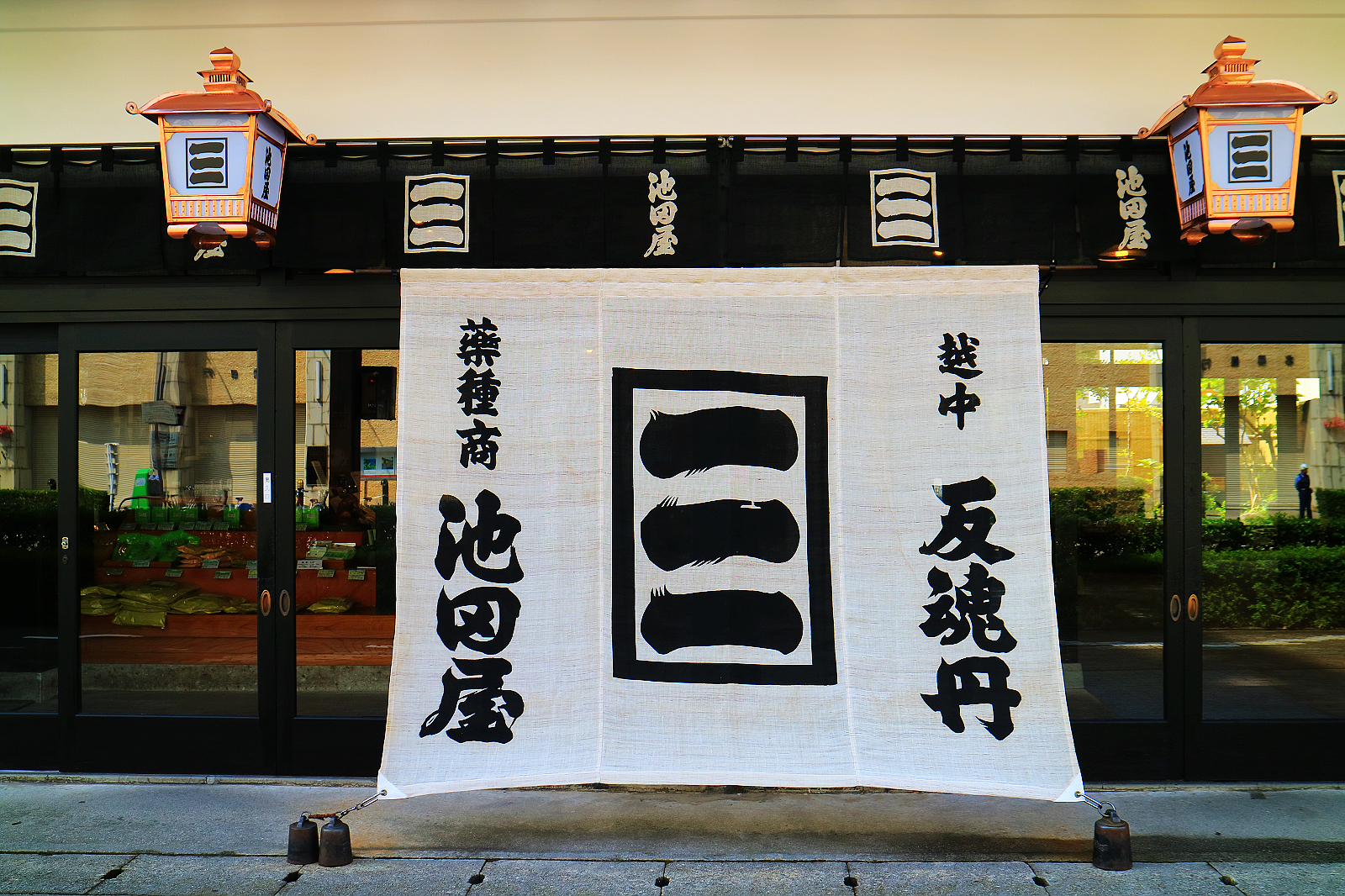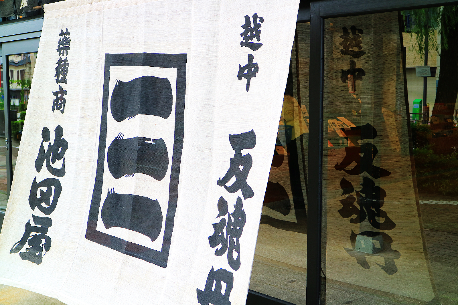 看完富山城,步行10分鐘來到「池田屋安兵衛商店」。昭和11年,第一代池田實即在現址掛起暖簾批發漢藥,直到今天,古意盎然的老鋪已經成為知名地標。