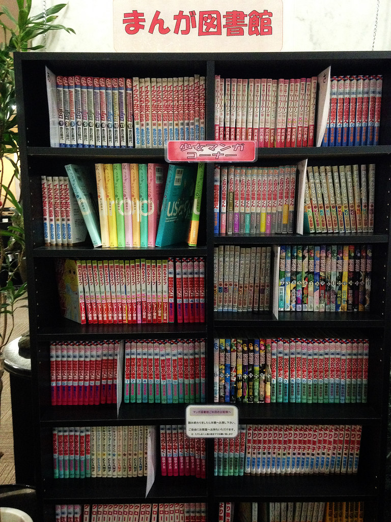 飯店Lobby的休息區不但有免費咖啡還有好幾櫃的漫畫!!