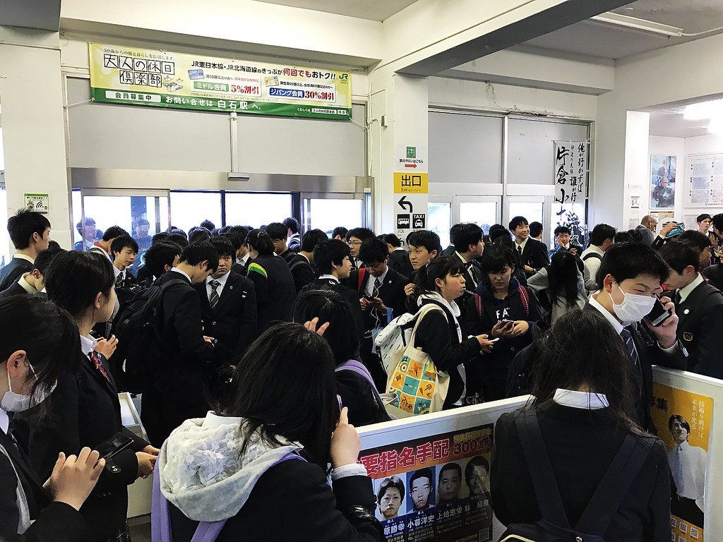 蜂湧而至的學生把小小白石站塞爆了