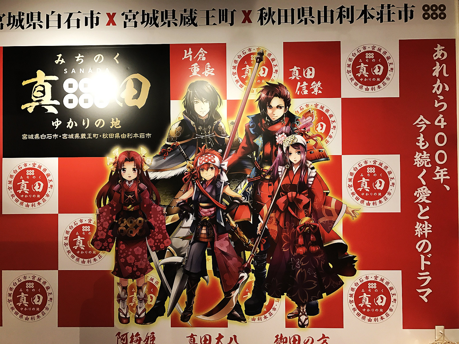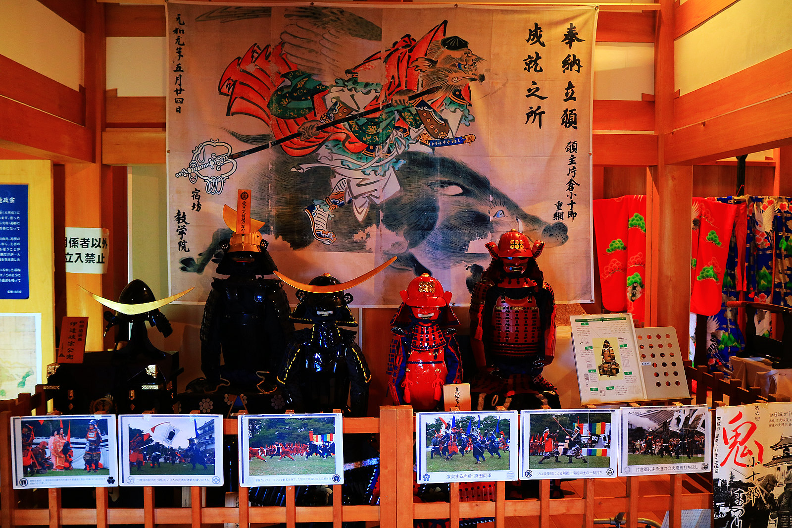 大廳陳列好幾幅巨幅看板說明白石市與真田家族的故事