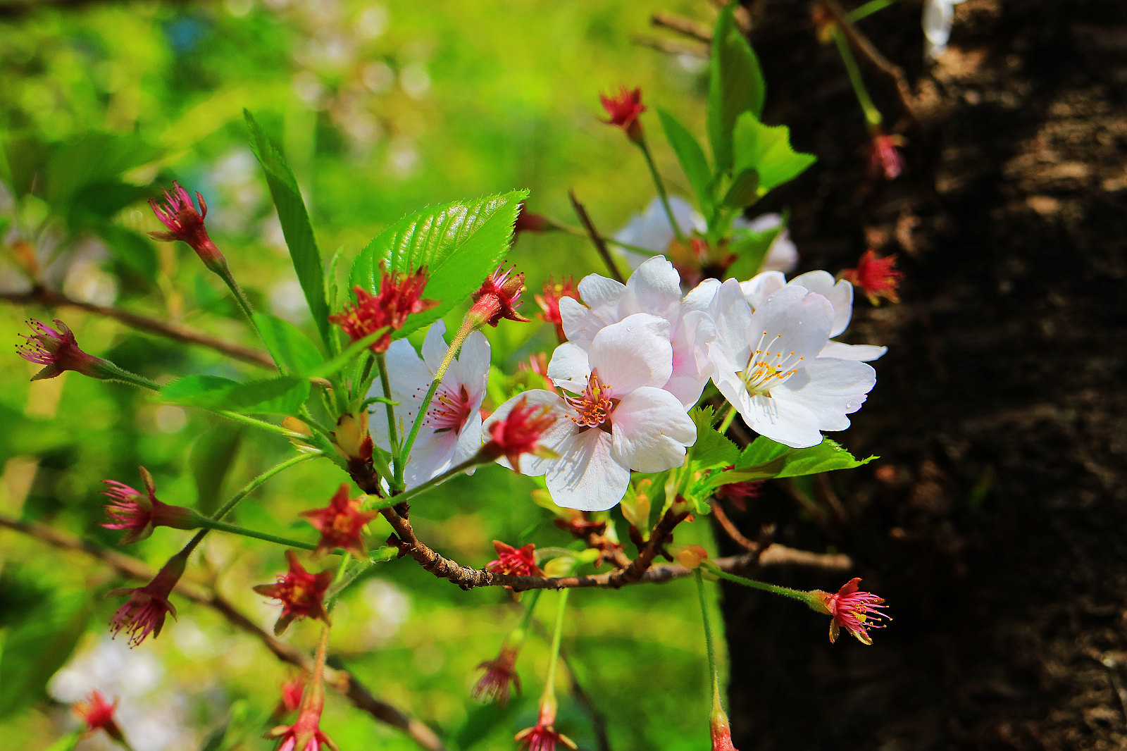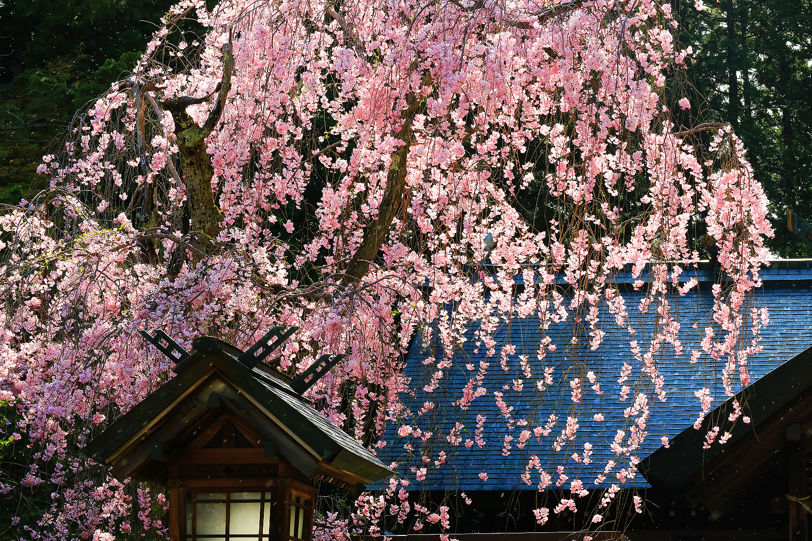 枝垂櫻在陽光映照下閃閃發光