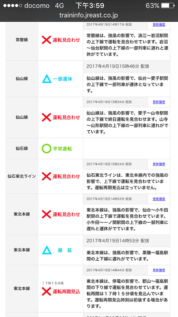 上網查天氣和列車行使資訊都相當不妙