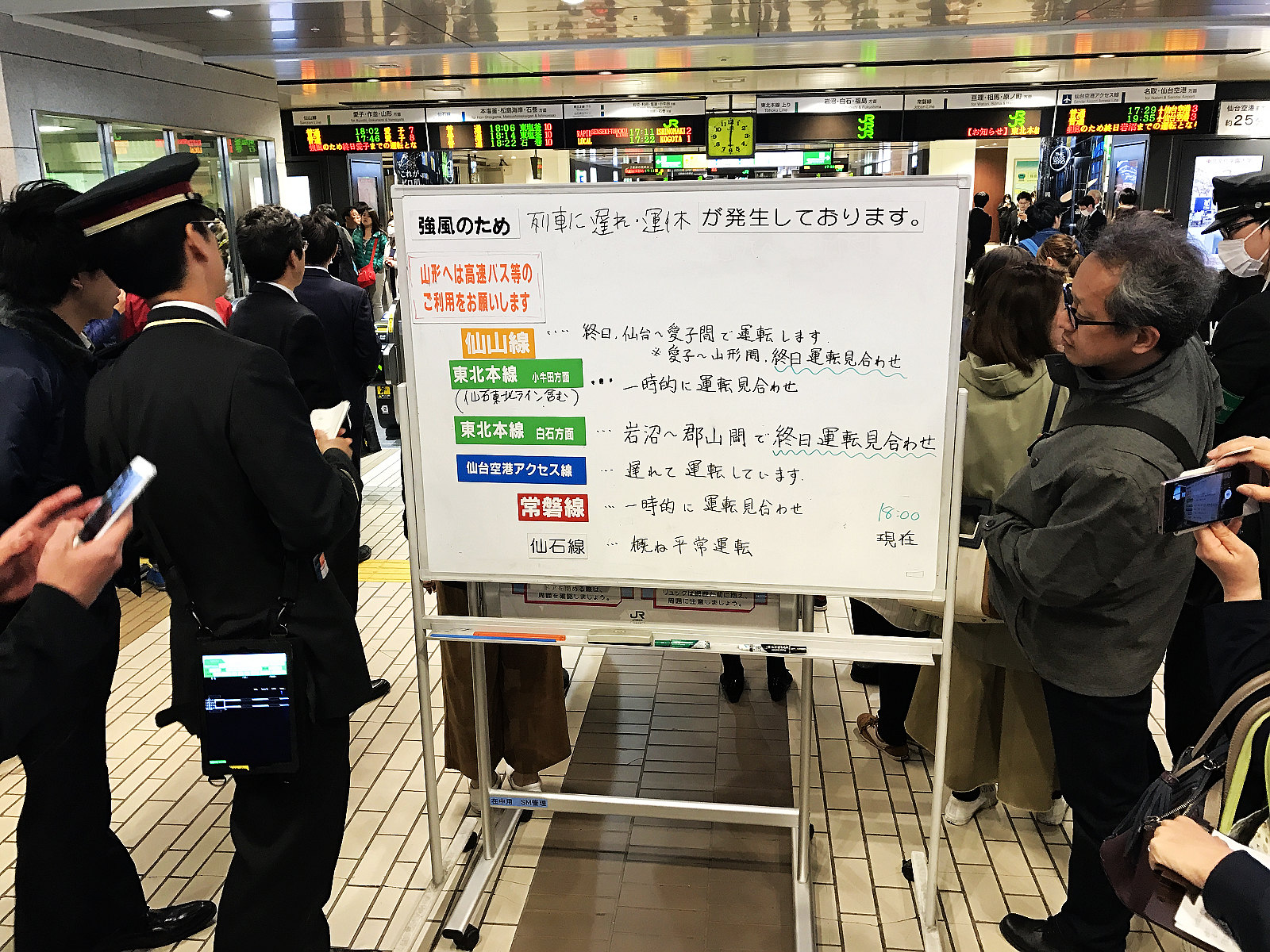終於回到仙台車站,也因為列車延誤而一團混亂