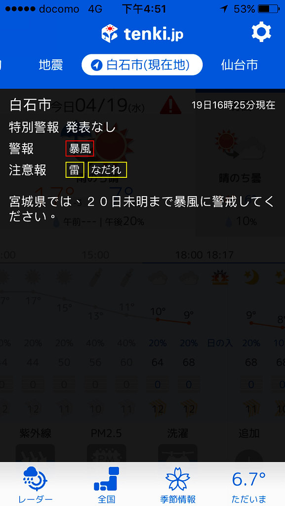 要去仙台車站搭東北幹線,天氣還好得很,誰料到等等會有春の嵐