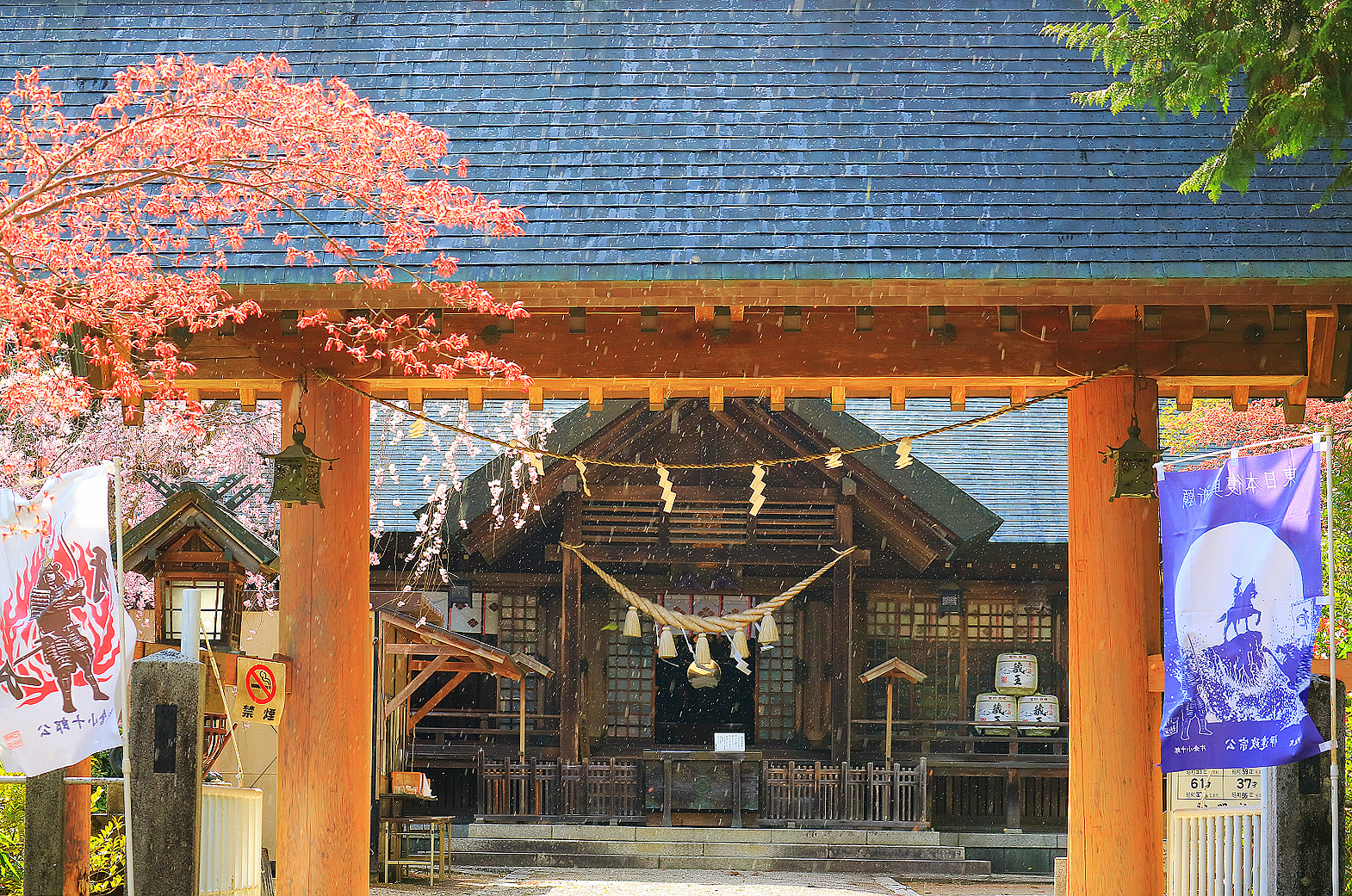 白石藏王站不愧是新幹線車站,果然大多了,大廳陳列好幾幅巨幅看板說明白石市與真田家族的故事,我們與看板合照、吃碗白石溫麵,沒想到第一次與白石藏王站結緣竟然是在春嵐中。