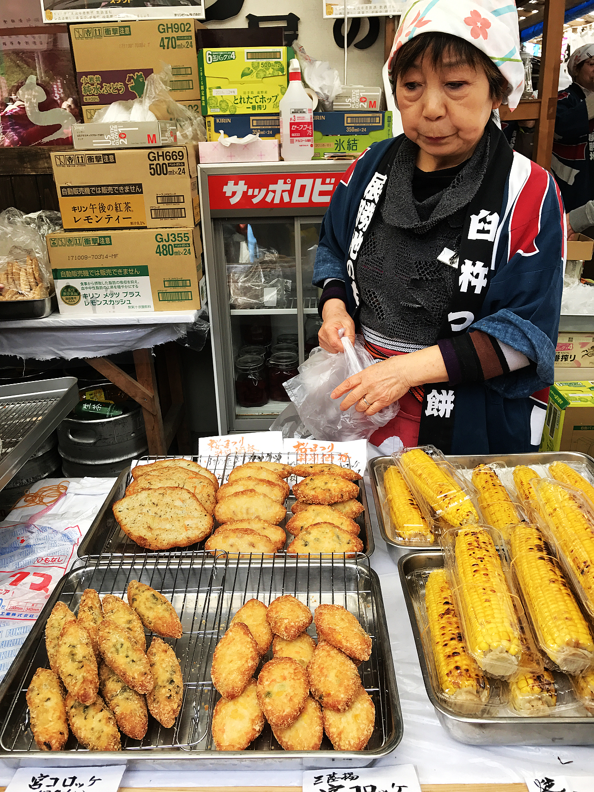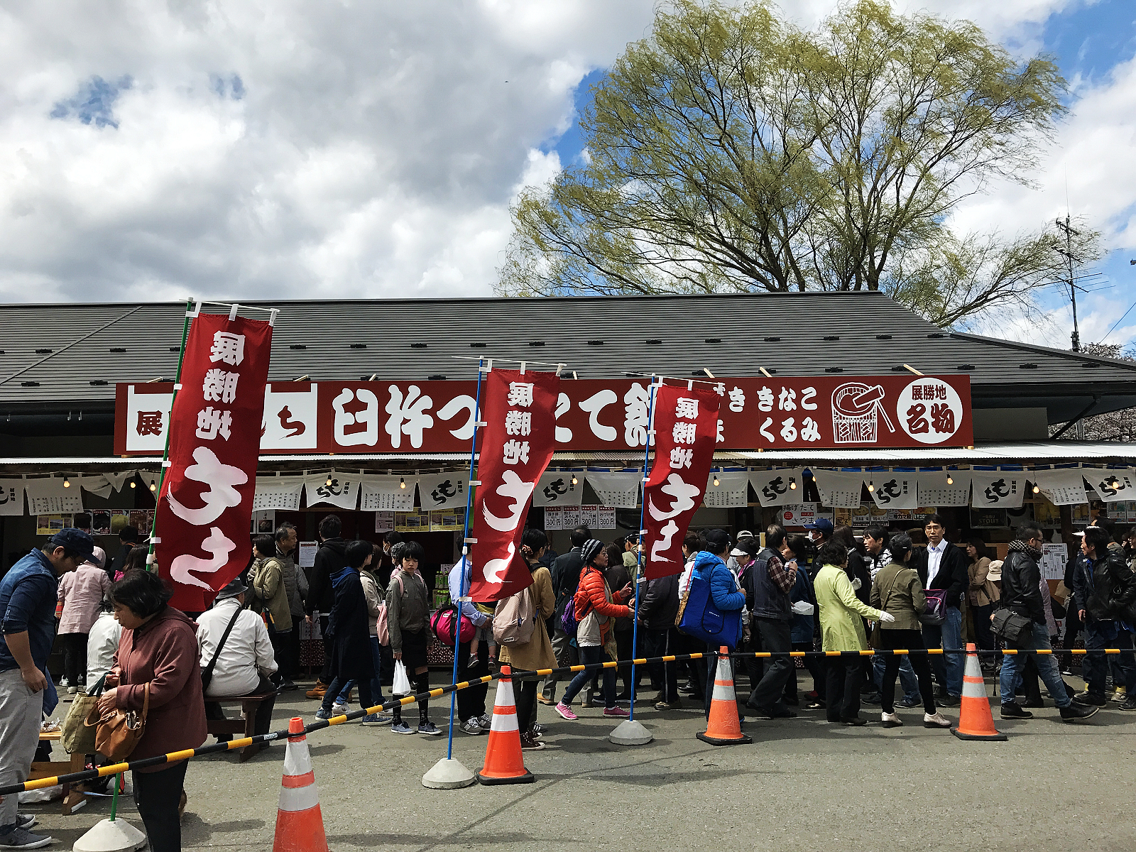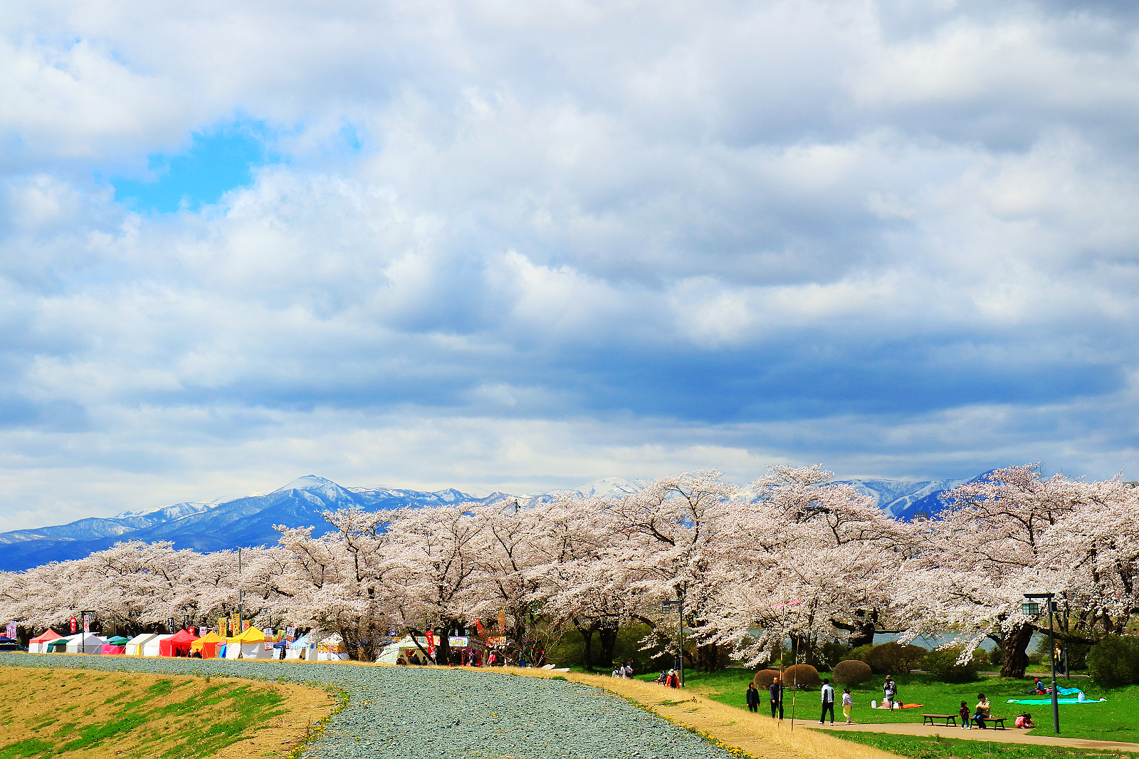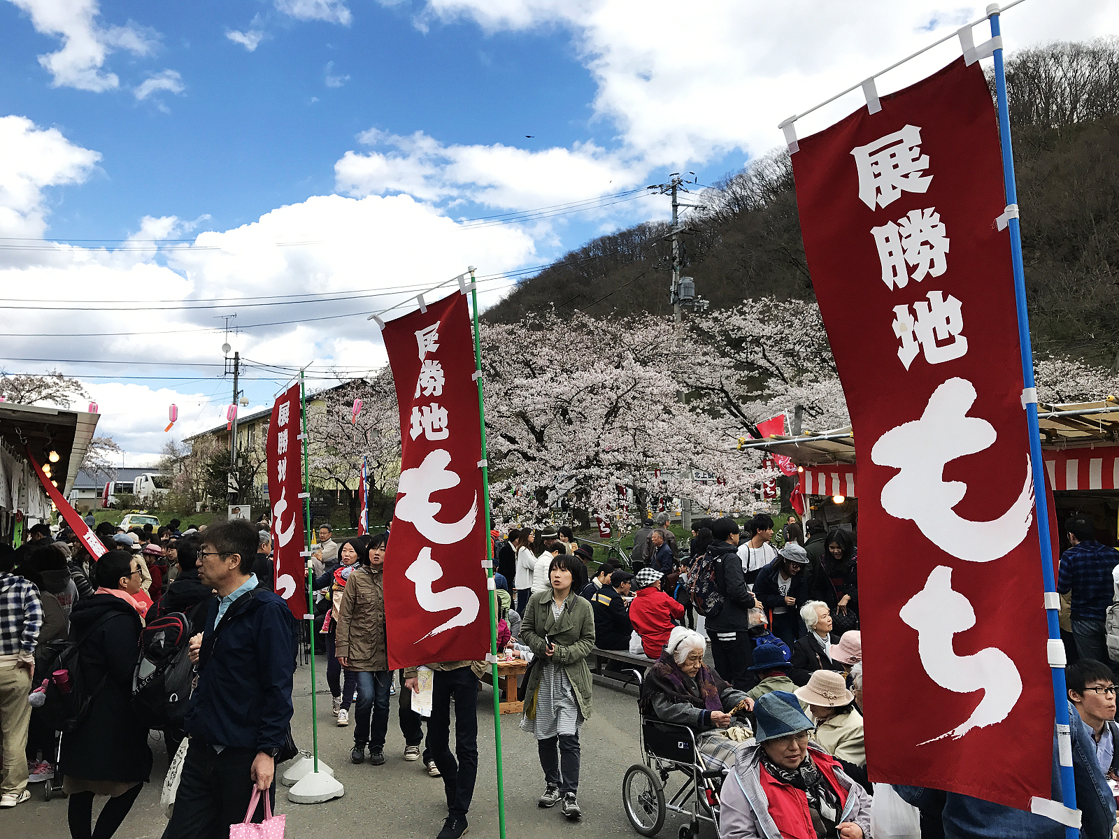 短短2公里櫻花隧道,我們竟然花了2個多小時才走完,可見得有多美啊!走完全程已過中午飢腸轆轆,幸好一旁休息處的露天攤位販售岩手縣名物為主的各式美食,現烤現做琳瑯滿目,填飽肚子後繼續搭船到對岸。