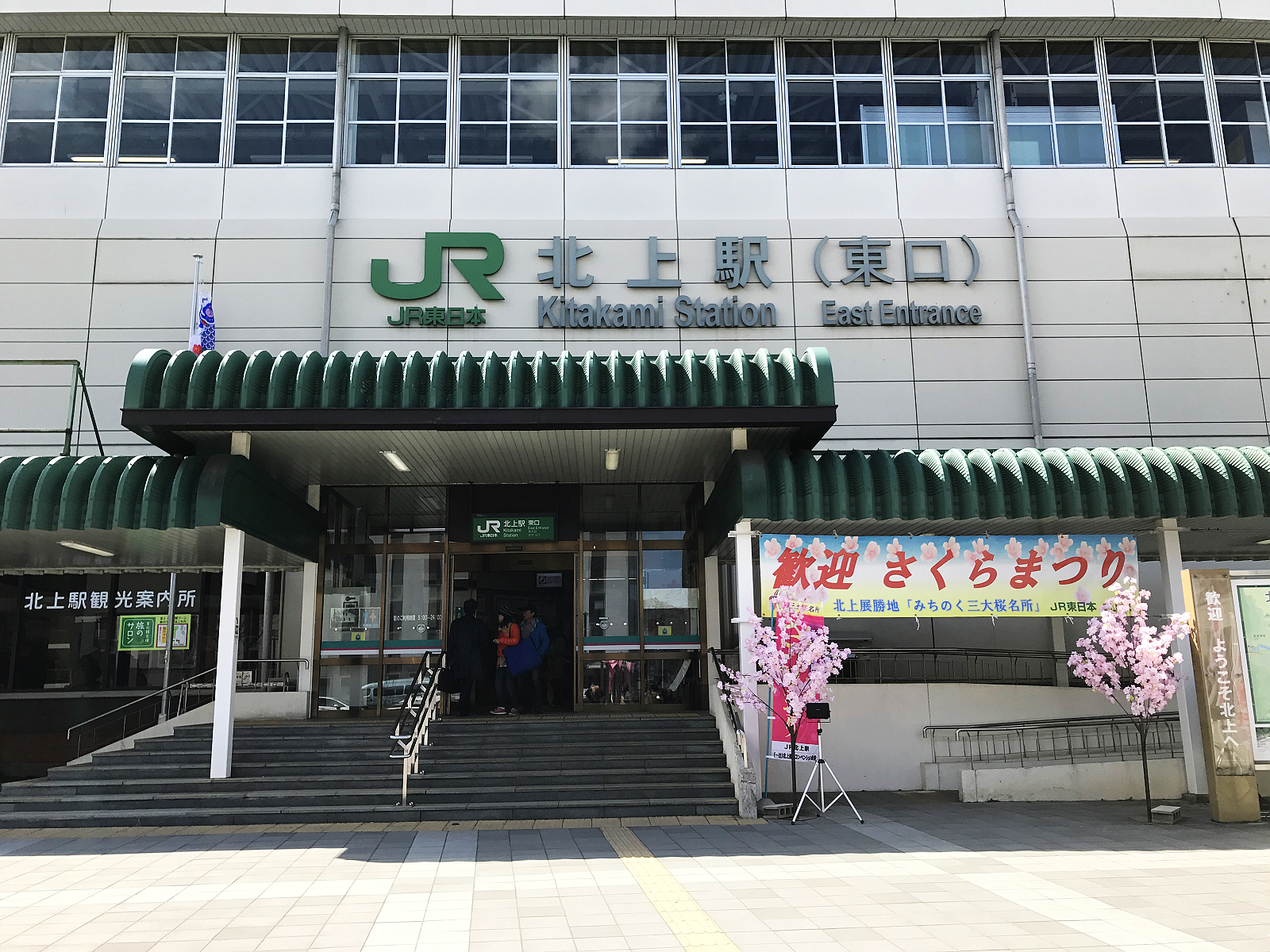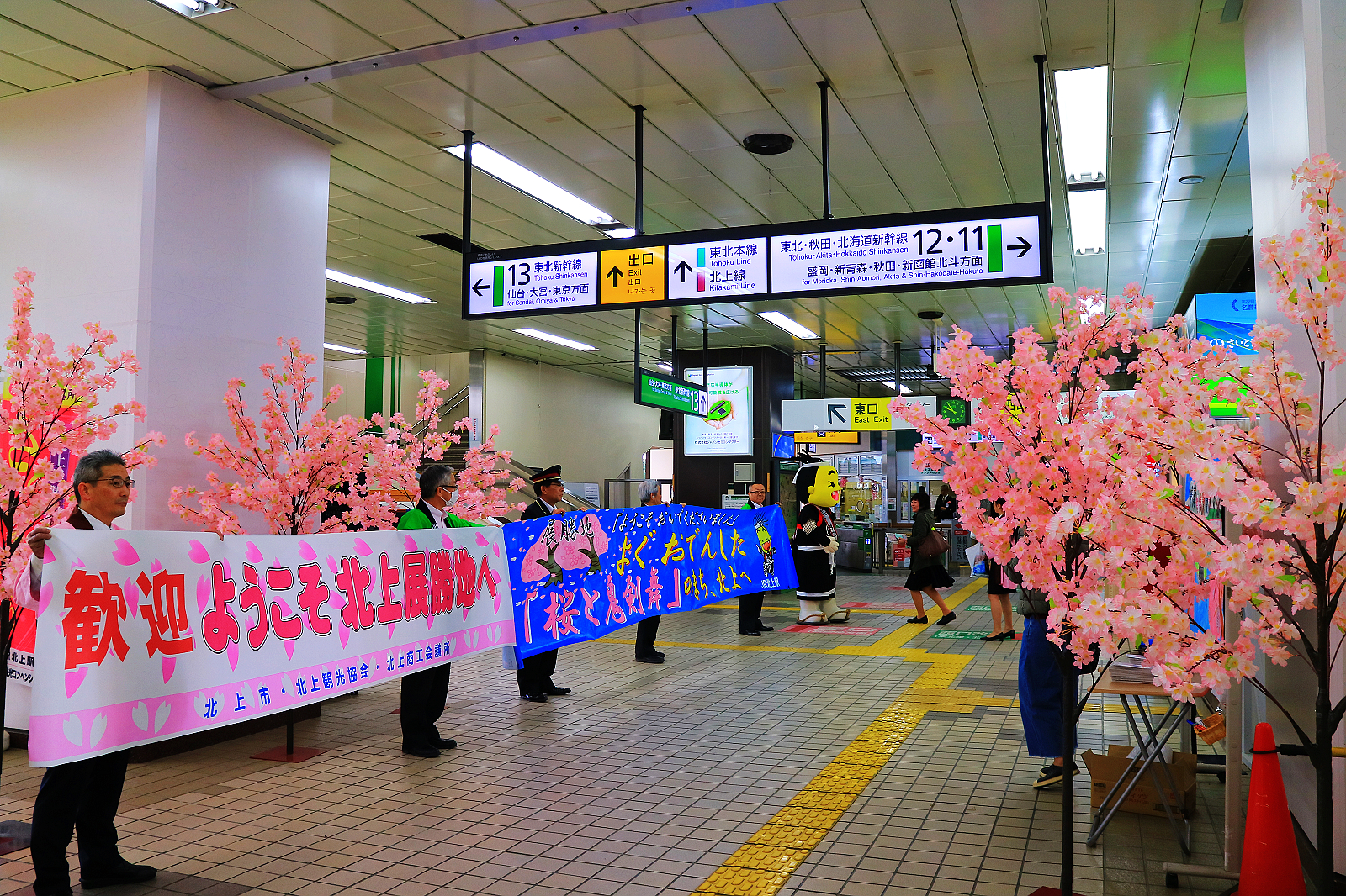 北上展勝地交通非常方便,新幹線直達北上站,一進車站,站務人員竟然舉布條迎接