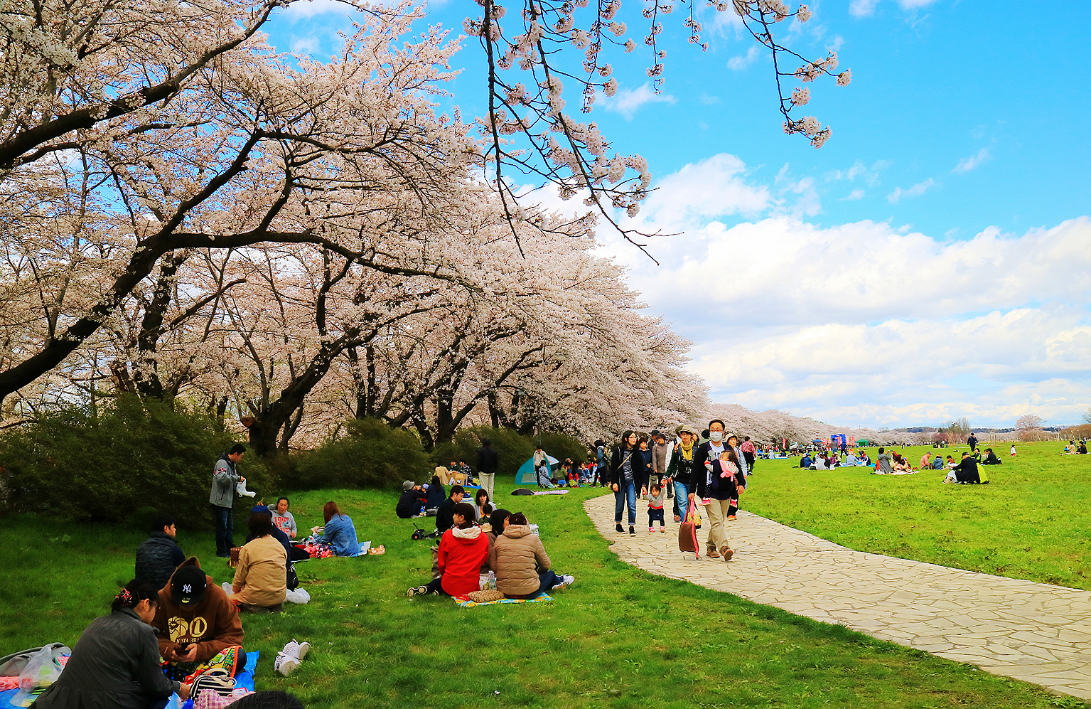 最吸睛的是從珊瑚橋開始沿北上川畔綿延長達2公里的染井吉野櫻隧道