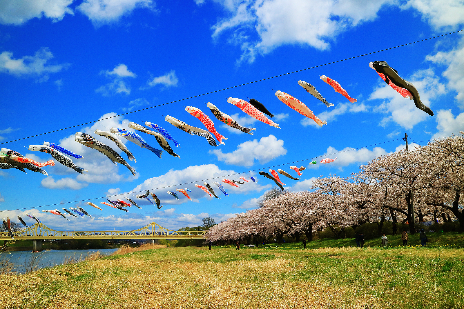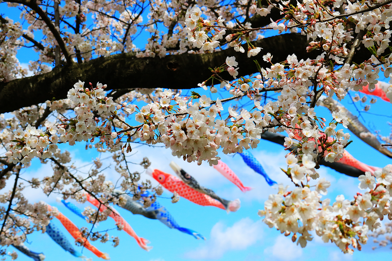 鯉魚搭配櫻花盛況,藍天下心胸舒暢,療癒動人。
