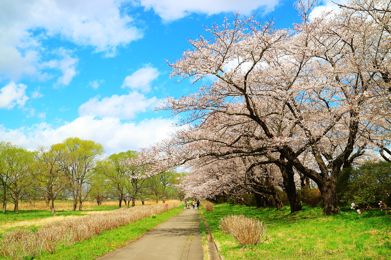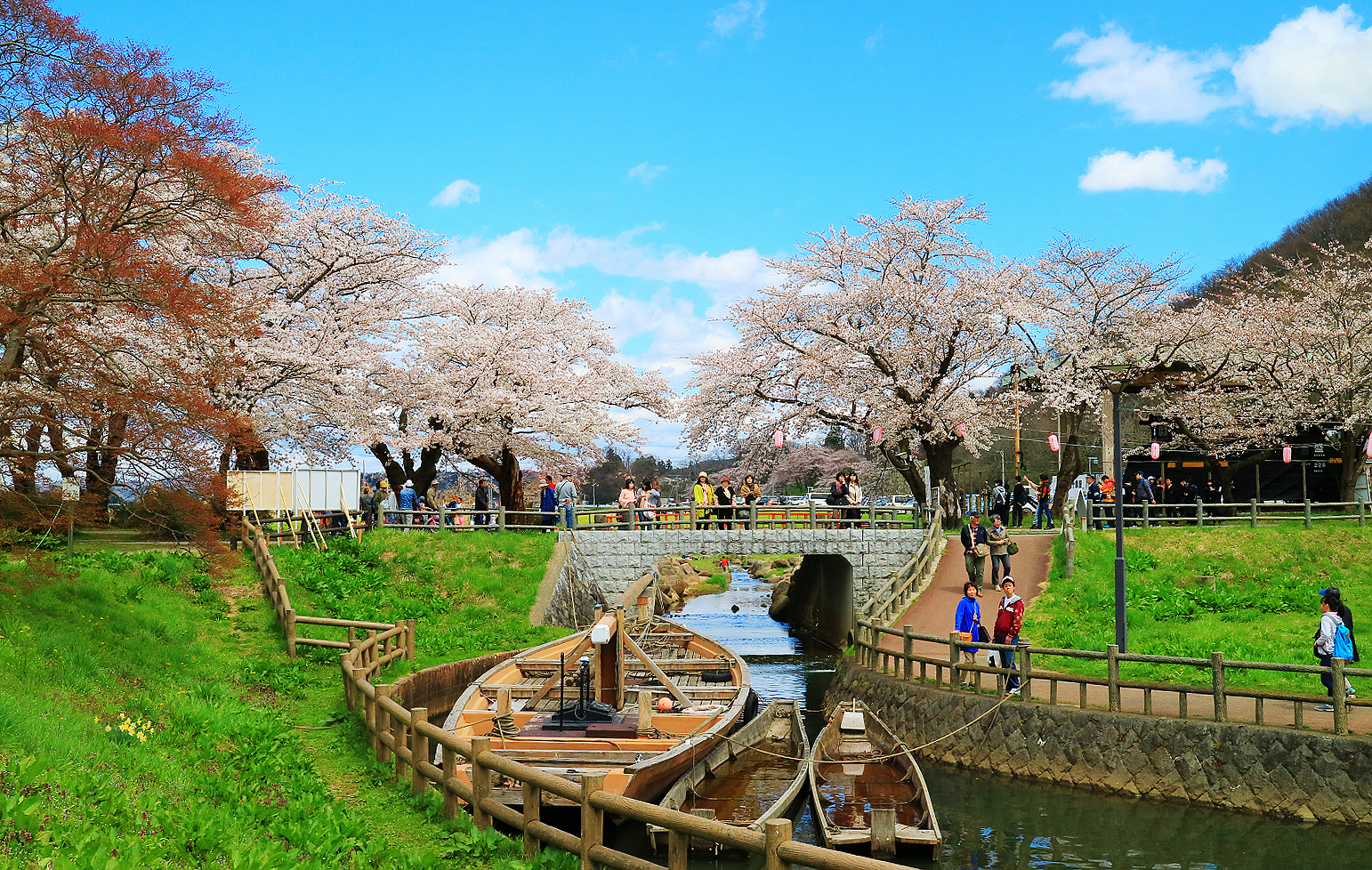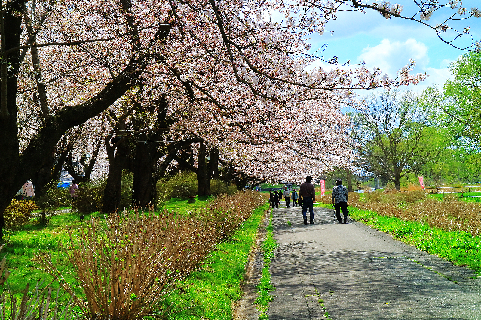 可走10分鐘到北上川畔搭船到對岸櫻花隧道東側,我們則徒步30分鐘過珊瑚橋到櫻花隧道西側開始走