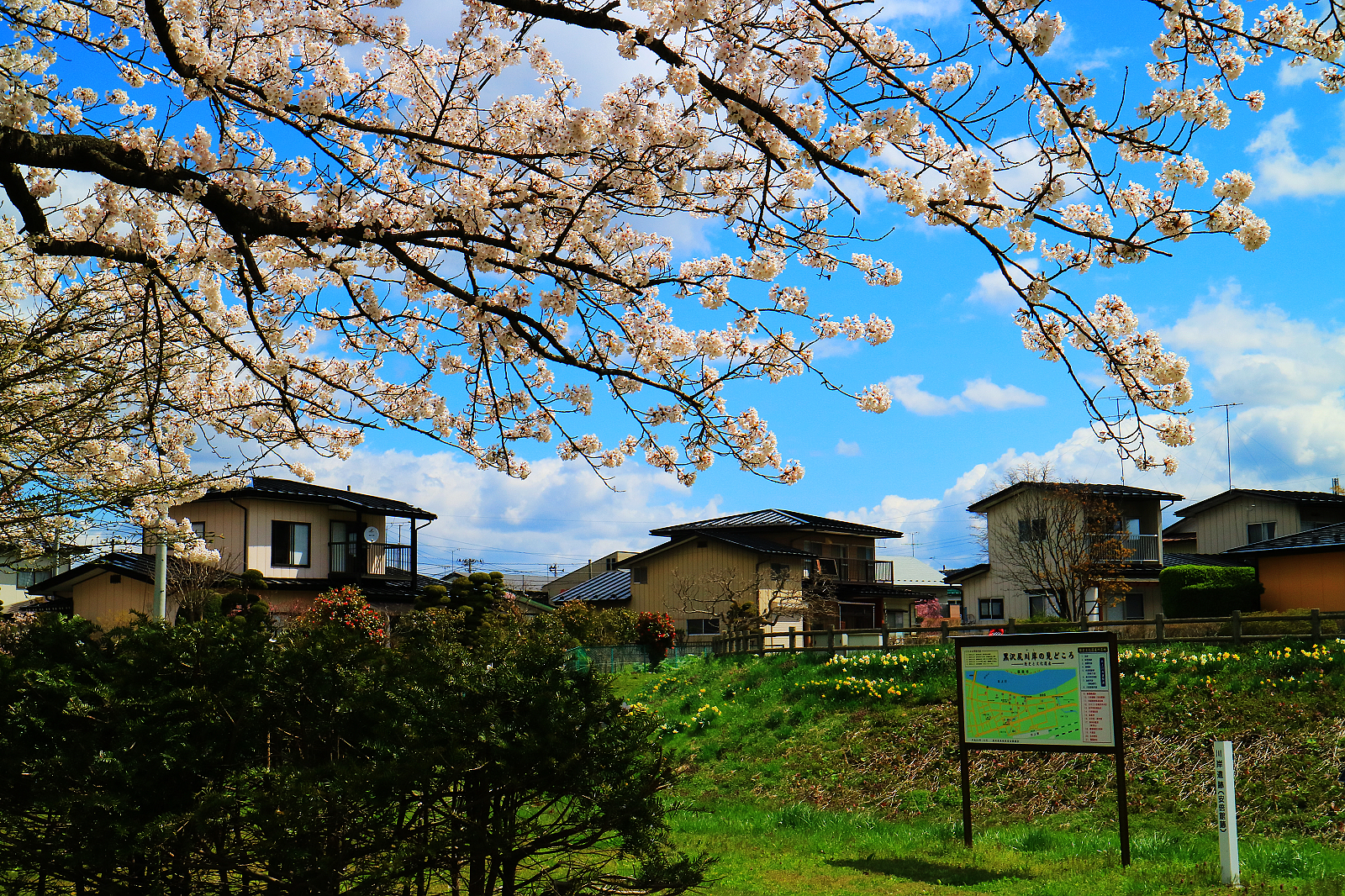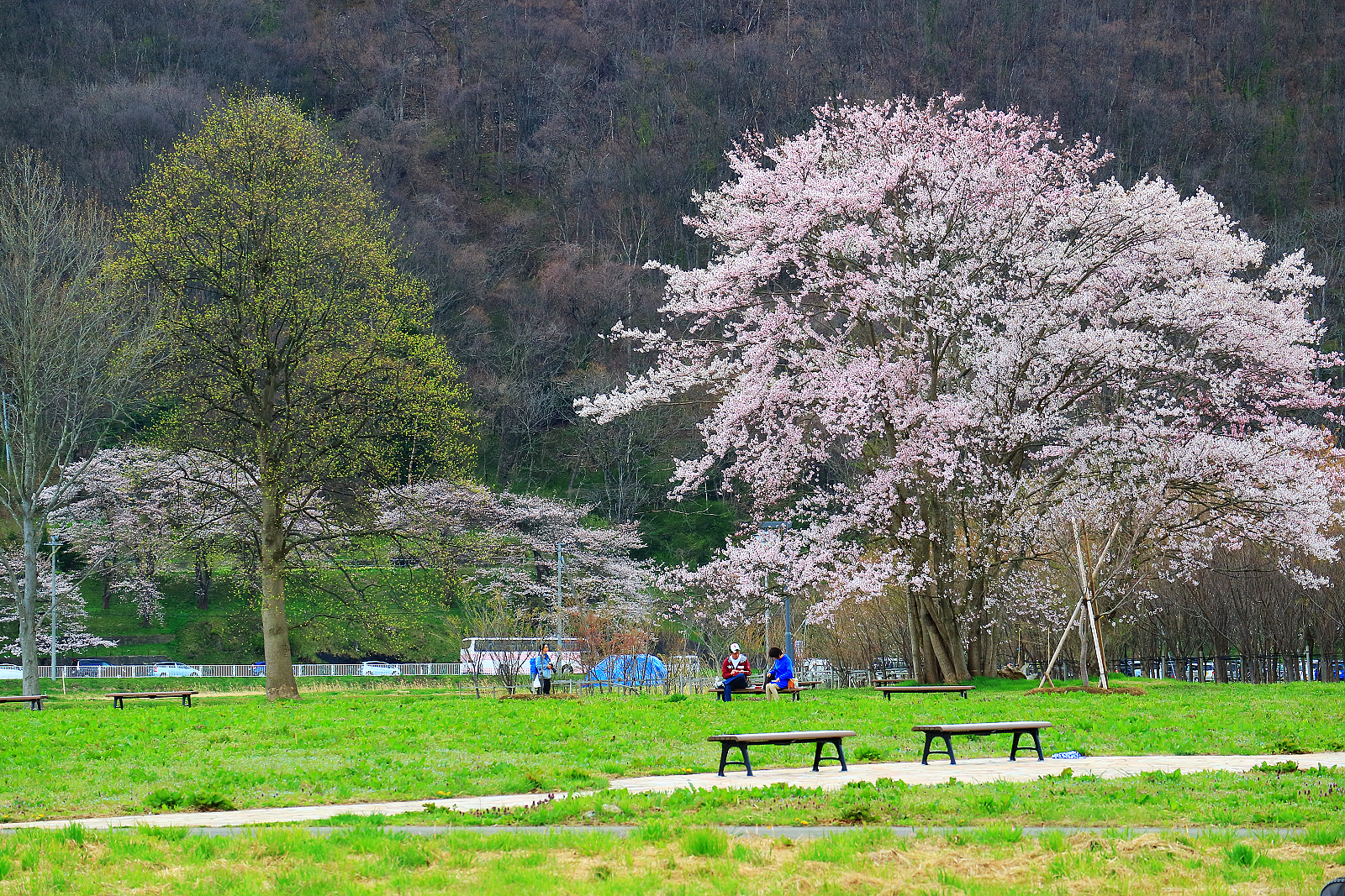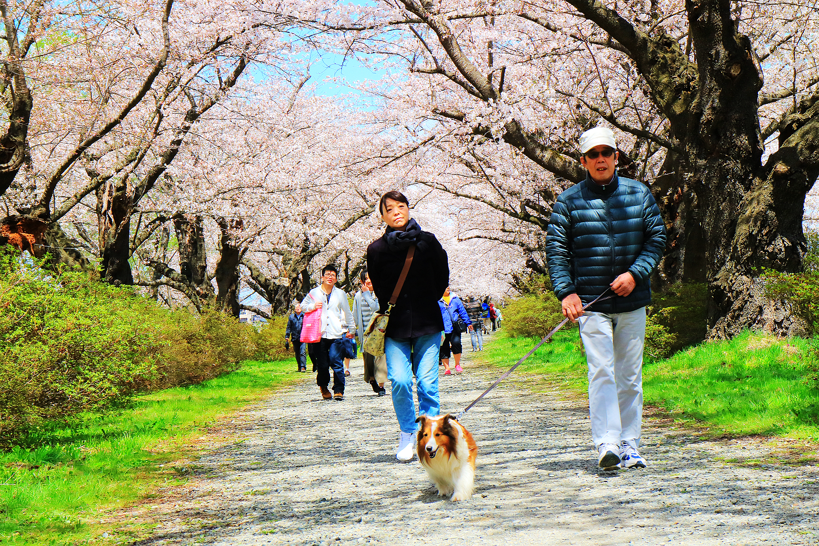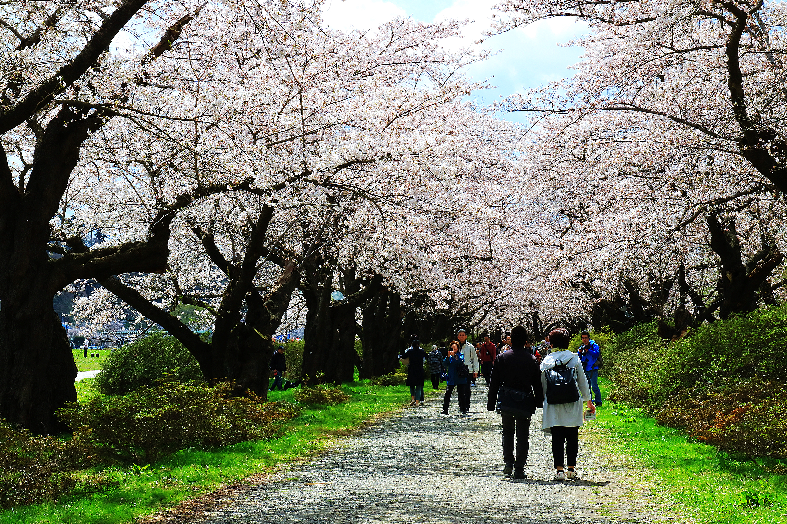 可走10分鐘到北上川畔搭船到對岸櫻花隧道東側,我們則徒步30分鐘過珊瑚橋到櫻花隧道西側開始走