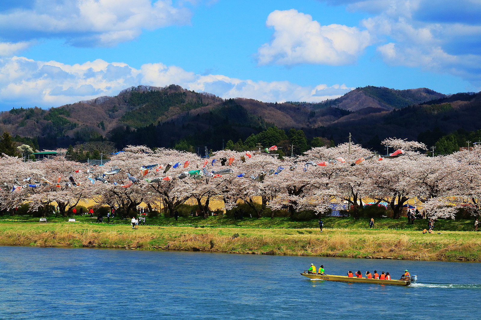 在北上川青空泅泳的七彩鯉魚旗,與微風中舞動的櫻花共譜紛鬧蓬勃的春意。搖曳瀲灩水光間的幾葉扁舟、穿梭櫻花隧道的仿古觀光馬車,更增添別具一格的浪漫風情。沐浴在北上展勝地充滿生命力的櫻花祭典中,身心充盈了無遺憾的大滿足感!