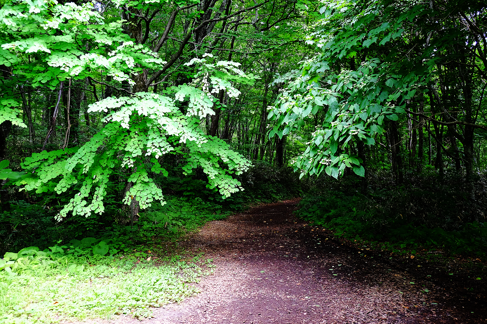 繼續往前走,接下來經過的幾個池景色都差不多,落口の池、中の池、越口の池湖水都是較淡的碧綠色