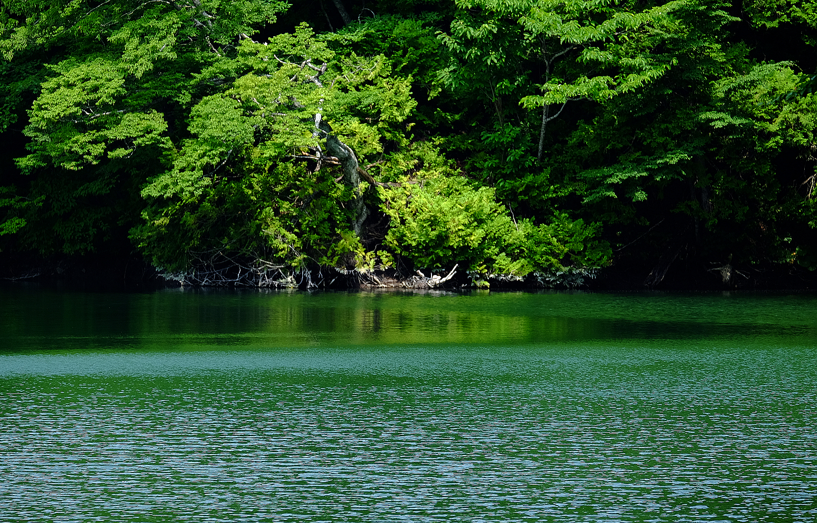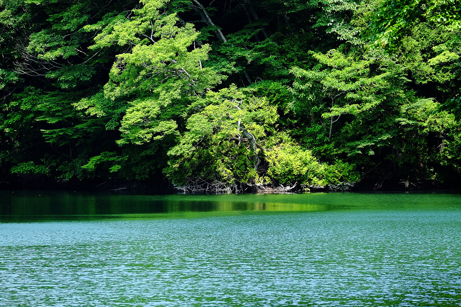 標高150公尺~250公尺的「十二湖」位於白神山地山腳丘陵地,是零星散佈廣大山毛櫸森林中的多個湖泊總稱,涵蓋範圍廣達4平方公里,隸屬津輕國家公園。這些湖泊是江戶時期寶永元年(1704)大地震山崩地裂形成的33個大小不等堰塞湖,從崩裂點往下看剛好可一覽12座湖泊,因此有十二湖之稱。