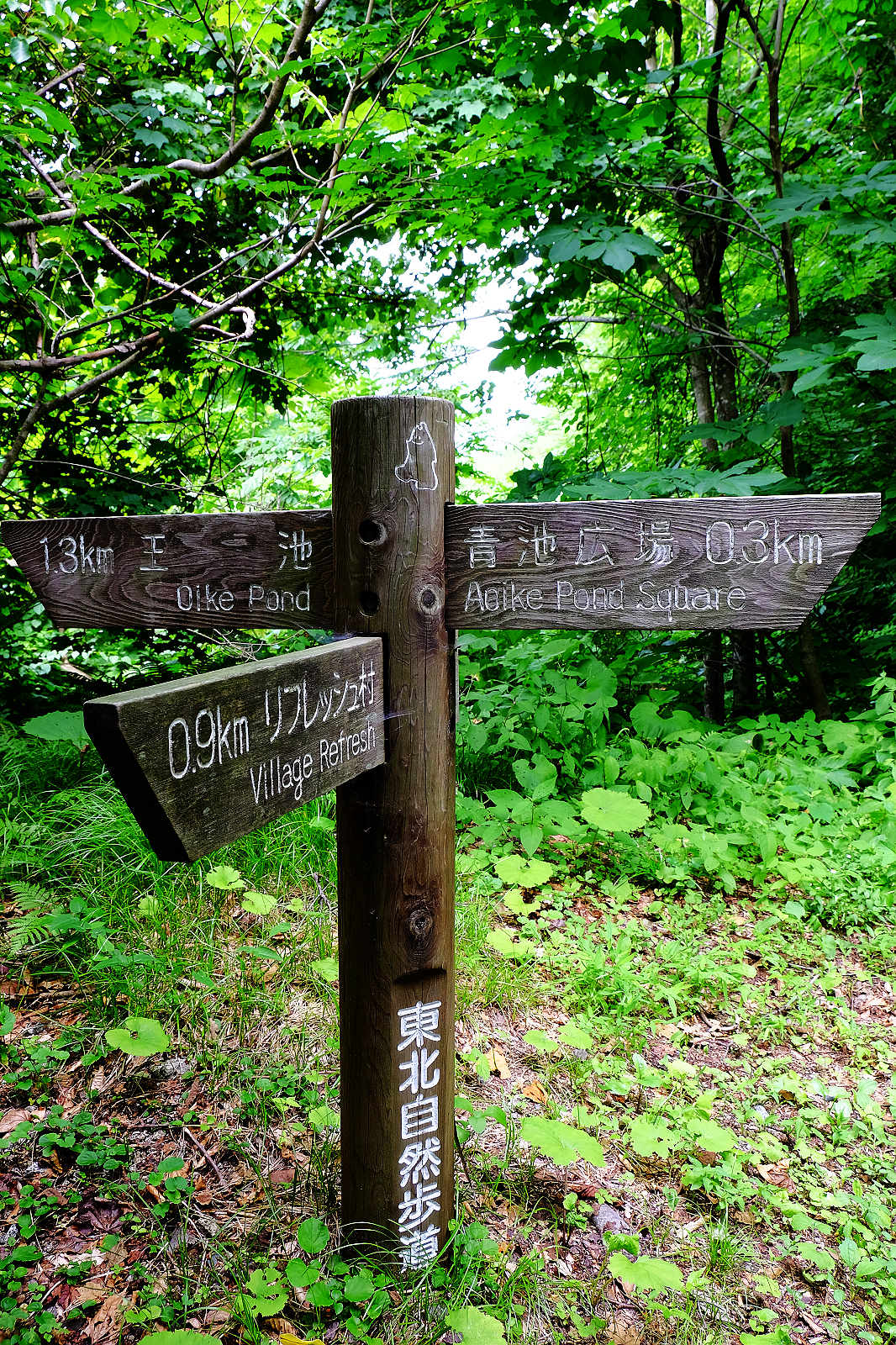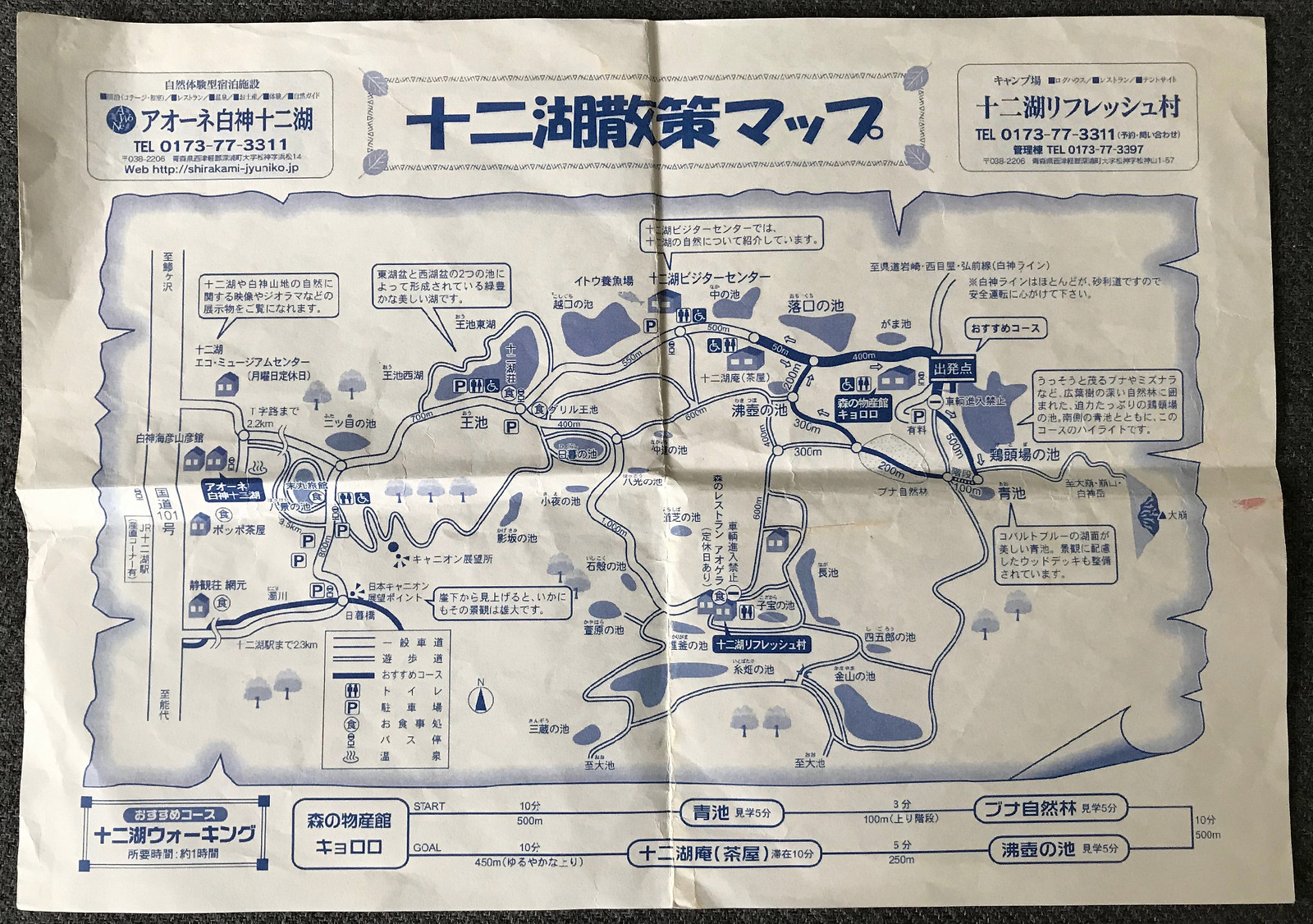 抵達十二湖站先到車站對面小雜貨店寄放行李,一件200大羊,可獲得一張十二湖散策地圖。接著搭11:35分巴士,約15分鐘到奧十二湖站,終於來到名聞遐邇的白神山地十二湖步道啦。