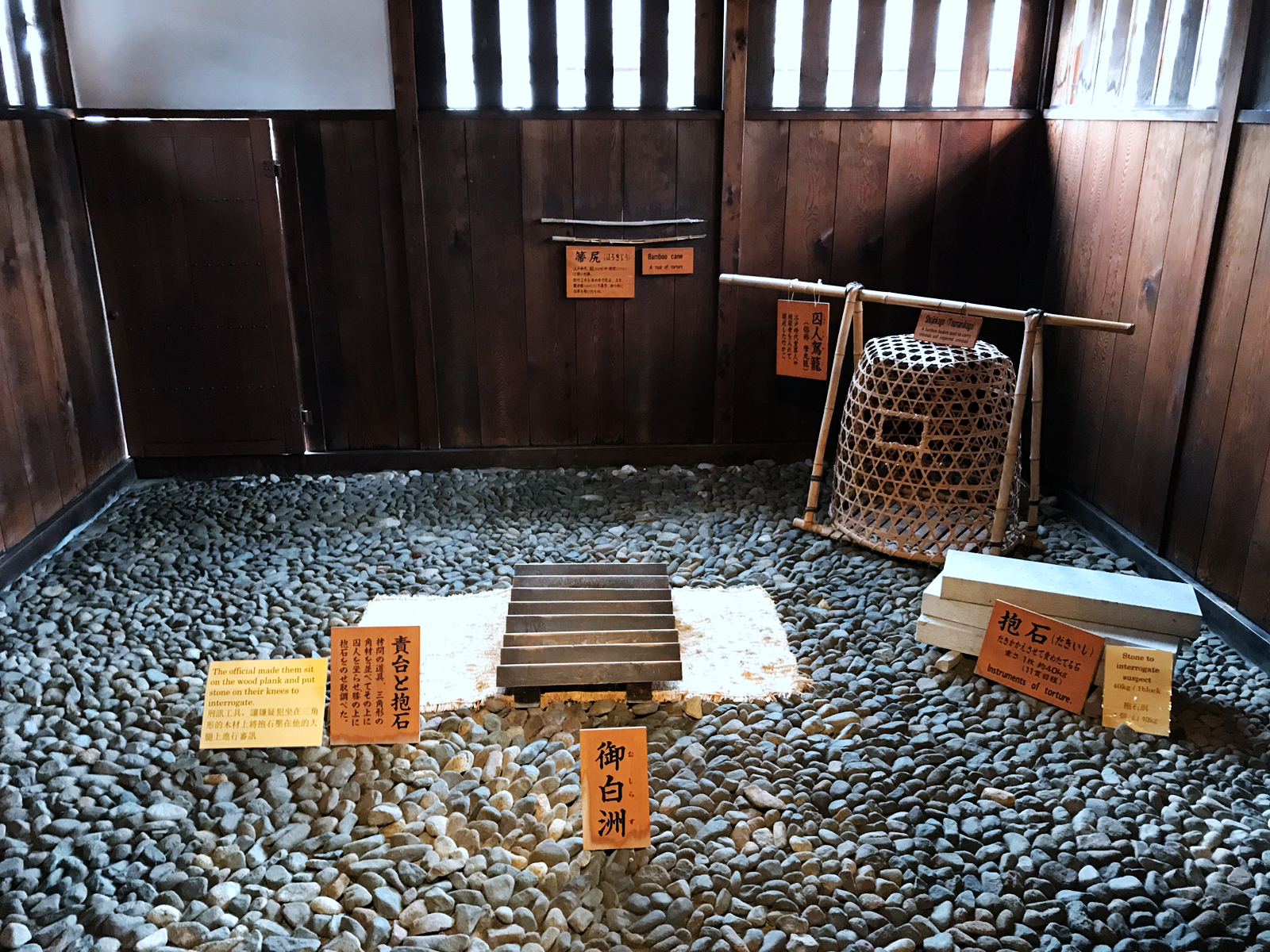御白洲是法庭,在此審問犯人與判刑,也展示各種刑具