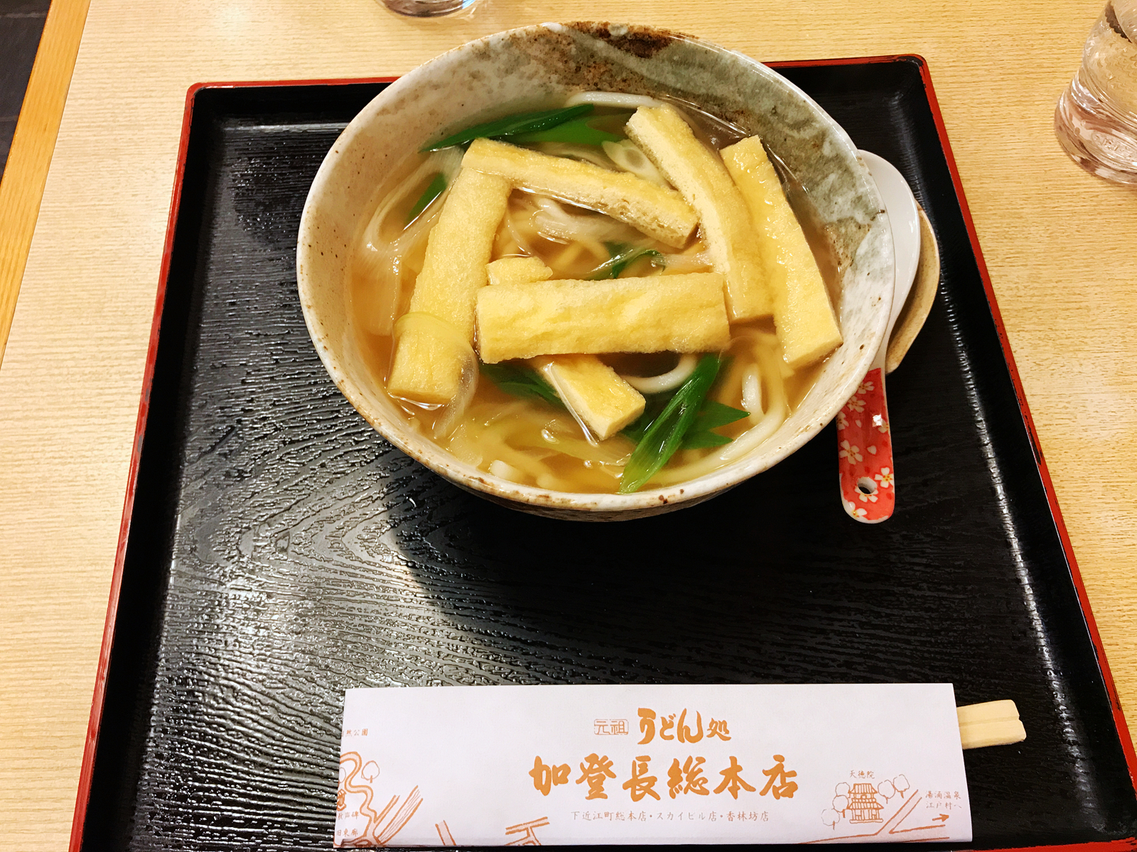 老舖「金沢加登長総本店」:1891年(明治24年)創業,已經有120多年歷史,是金沢大衆食堂始祖,金沢市區有數家分店。會到這間是誤打誤撞,話說我們逛完金澤城和兼六園,搭車在香林坊下車要去長町武家屋敷跡,天空忽然颳起風雪,看時間已經一點半了,決定先躲到一旁百貨公司「香林坊アトリオ」避風雪兼休息吃午餐,到B1美食街逛一圈就決定這家了。
