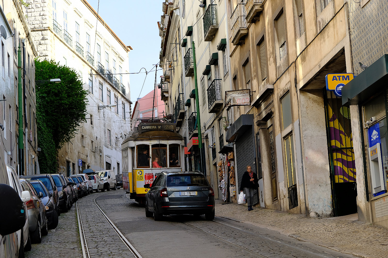 不像大多數觀光客擠在電車裏看窗外景色,我們跟著電車在Alfama老城區爬升起伏,穿梭在一條條彎曲狹窄陡峭的街巷中,隨著電車噹噹節奏,隨意塗鴉的彩繪牆面、轉角的車水馬龍、突然從房舍間冒出的車頭、宏偉的里斯本大教堂、隱身重簷後的修道院、電車汽車機車行人競逐,一幅幅繽紛的里斯本日常風情畫令人目不暇給。