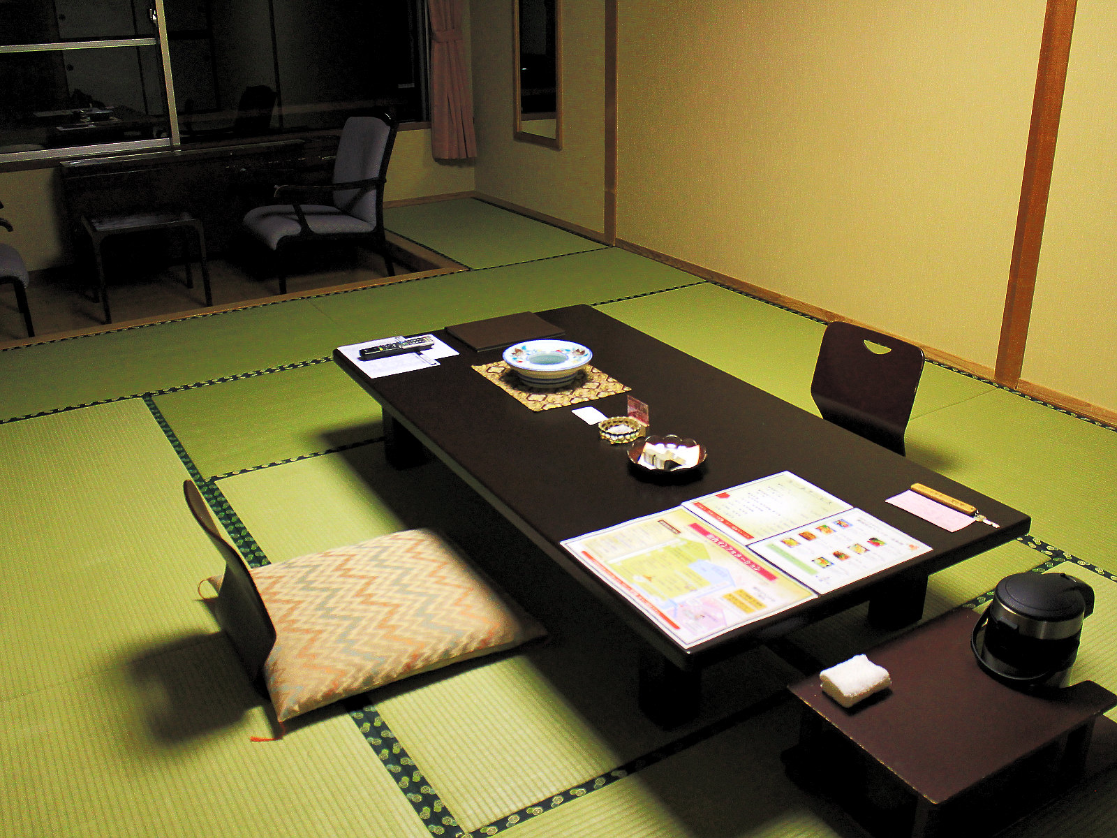 寬敞的房間是10〜12畳和室「月見亭」,抵達時已經晚了,所以房間拍起來暗暗的,