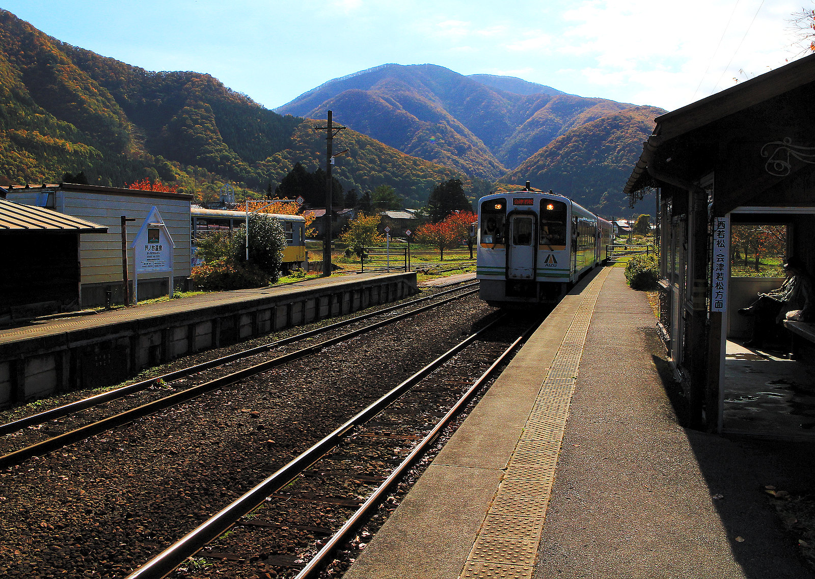 隔天我們再搭巴士到車站,準備搭火車回會津若松市